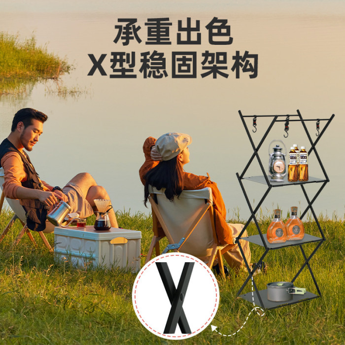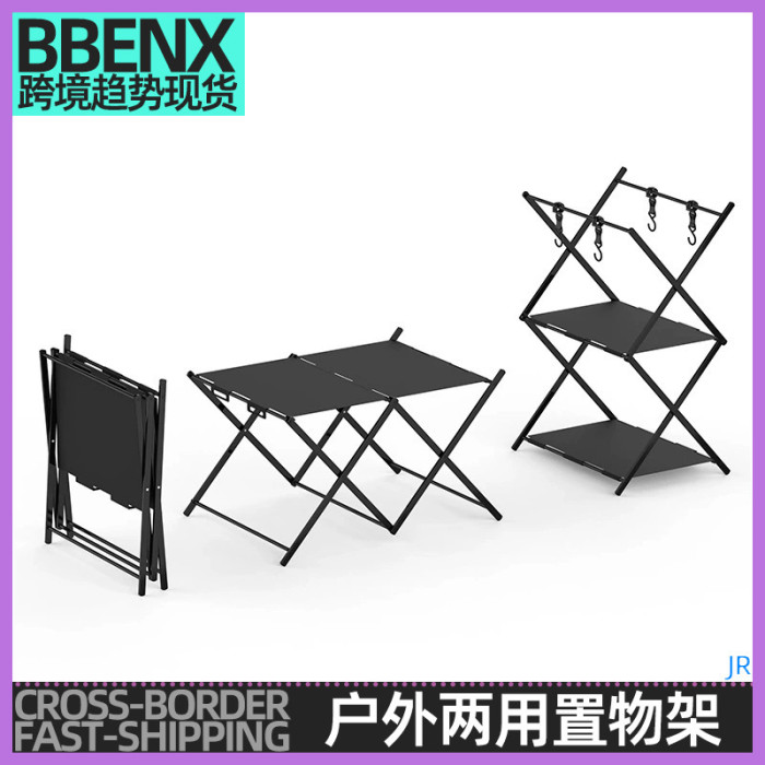 JR戶外兩用置物架露營多功能多層收納架鋁合金可攜式可折曡桌子