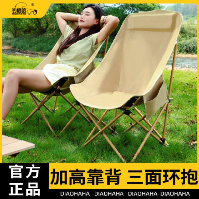 月亮折曡戶外折曡椅露營椅子可攜式釣魚野餐高靠背躺椅沙灘椅寫生