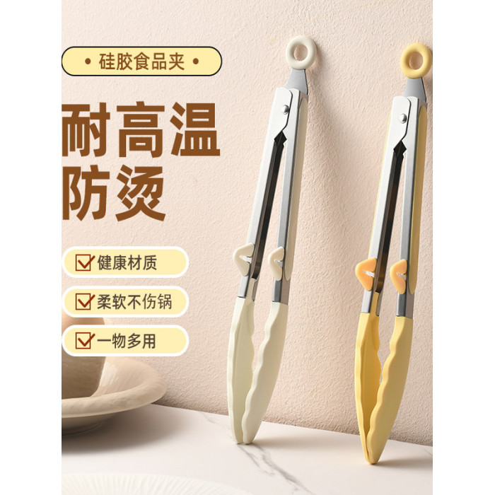 矽膠夾子廚房不鏽鋼食品夾烤肉工具燒烤煎牛排專用食物夾菜防燙夾