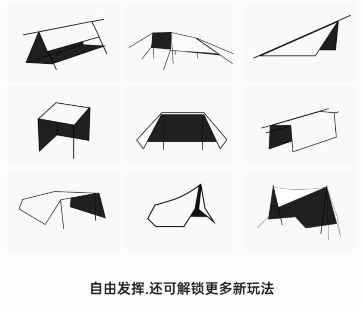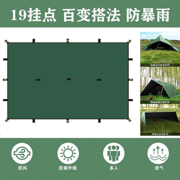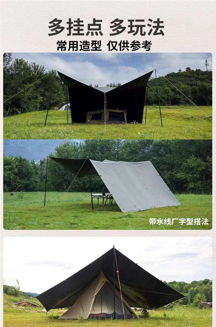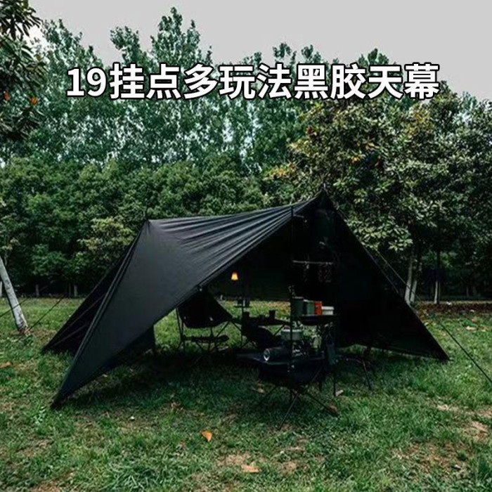 19多掛點黑膠塗銀天幕戶外BC露營多功能方形防雨防曬庇護所野外