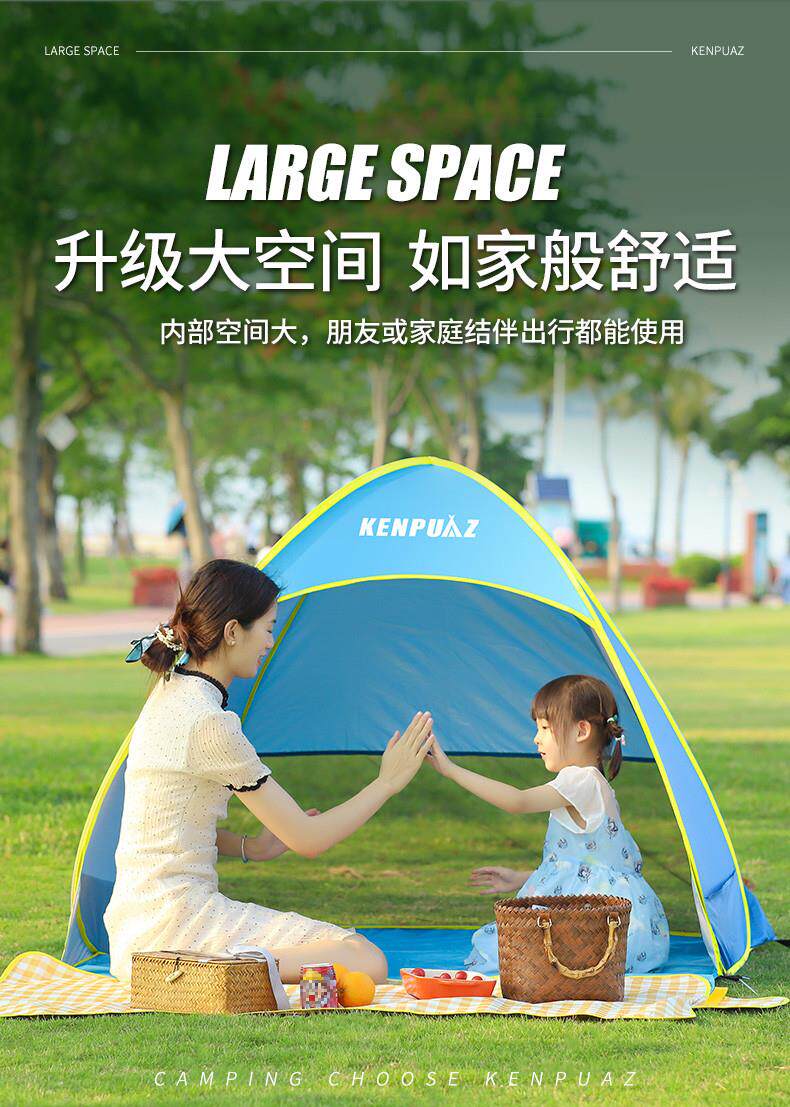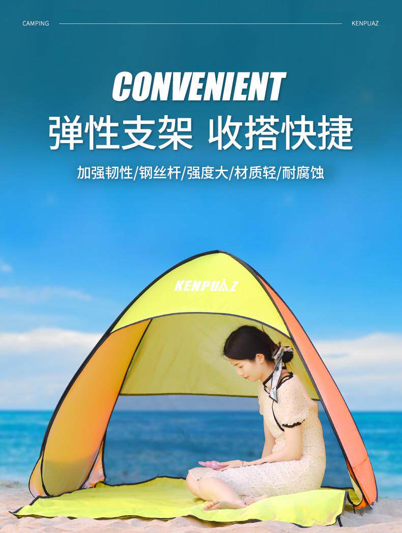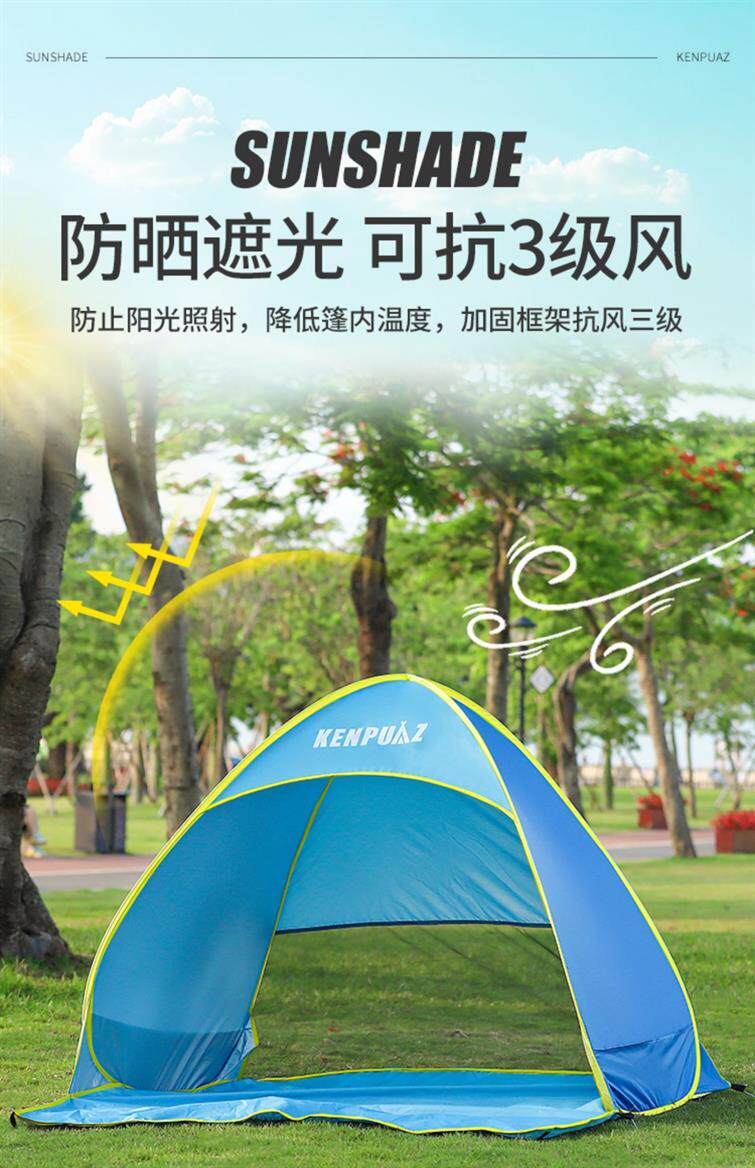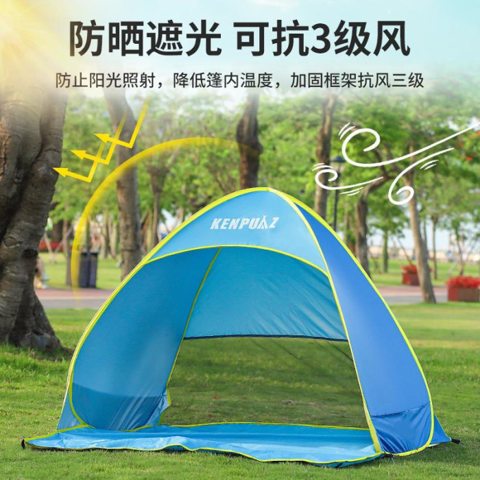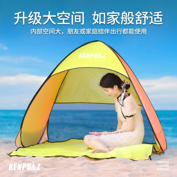 戶外折曡帳篷可攜式野餐裝備黑膠自動速開海邊沙灘防曬遮陽帳篷神器