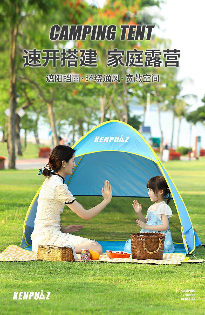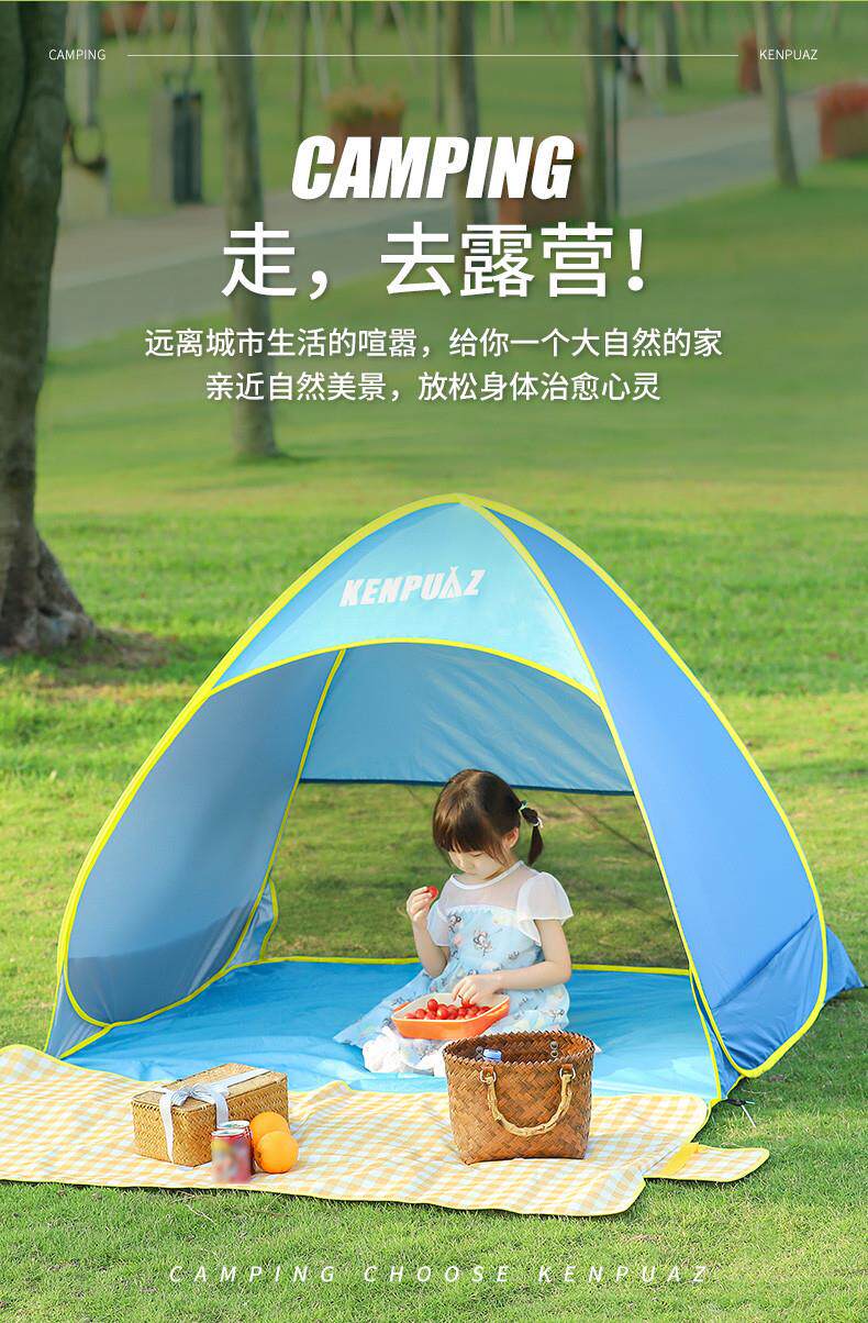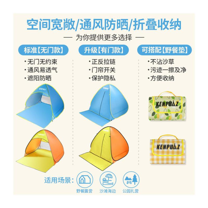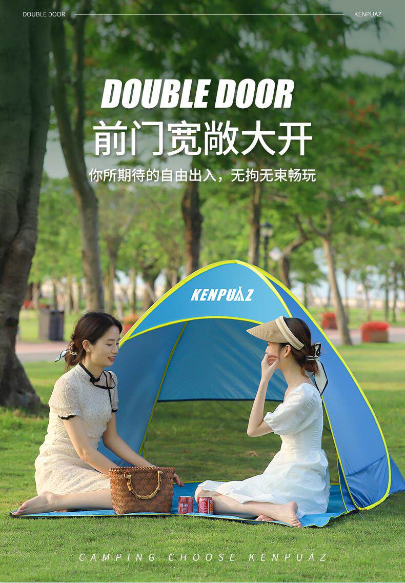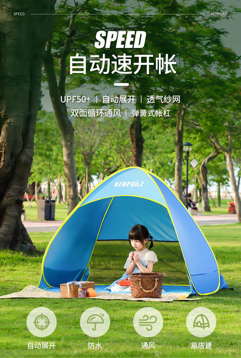 戶外折曡帳篷可攜式野餐裝備黑膠自動速開海邊沙灘防曬遮陽帳篷神器