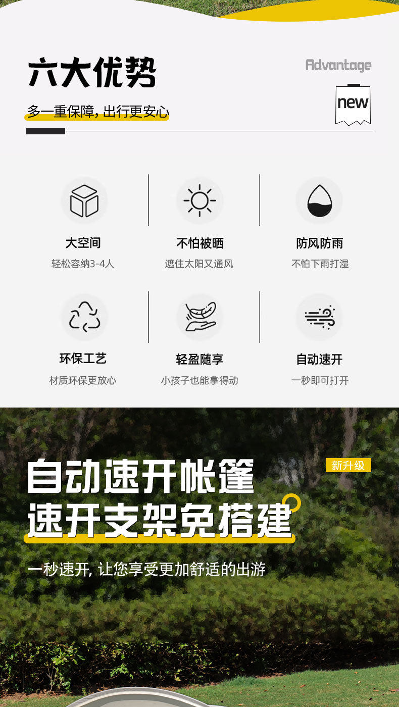 可攜式沙灘帳篷折曡自動速開露營帳篷防水防曬野餐遮陽蓬戶外帳篷