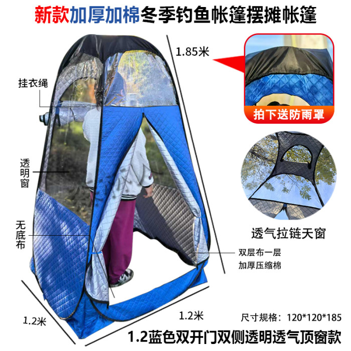加棉加厚冬季釣魚帳篷擺攤帳篷雙門加棉透明帳篷抗寒保暖神器