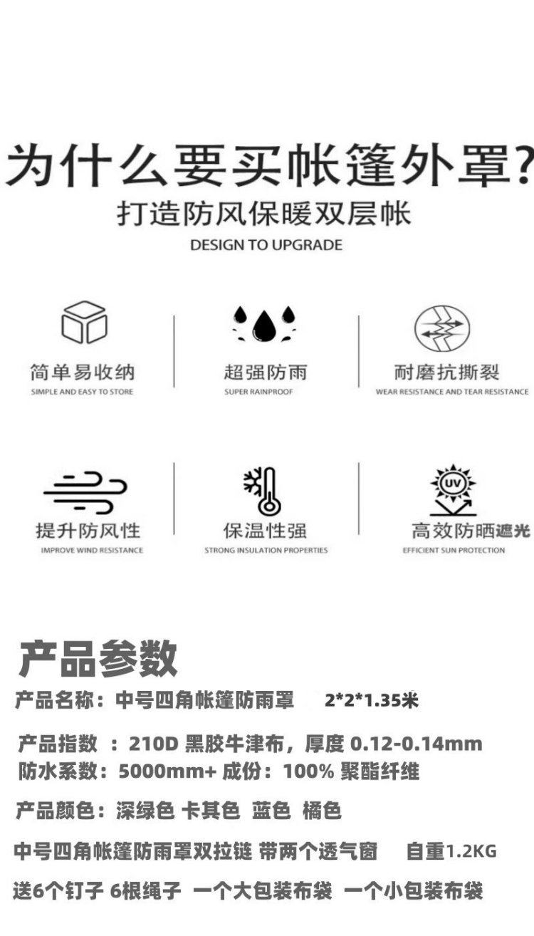 2*2米帳篷防雨罩3/4人黑膠外套罩防曬防紫外線防風防水保暖遮光罩