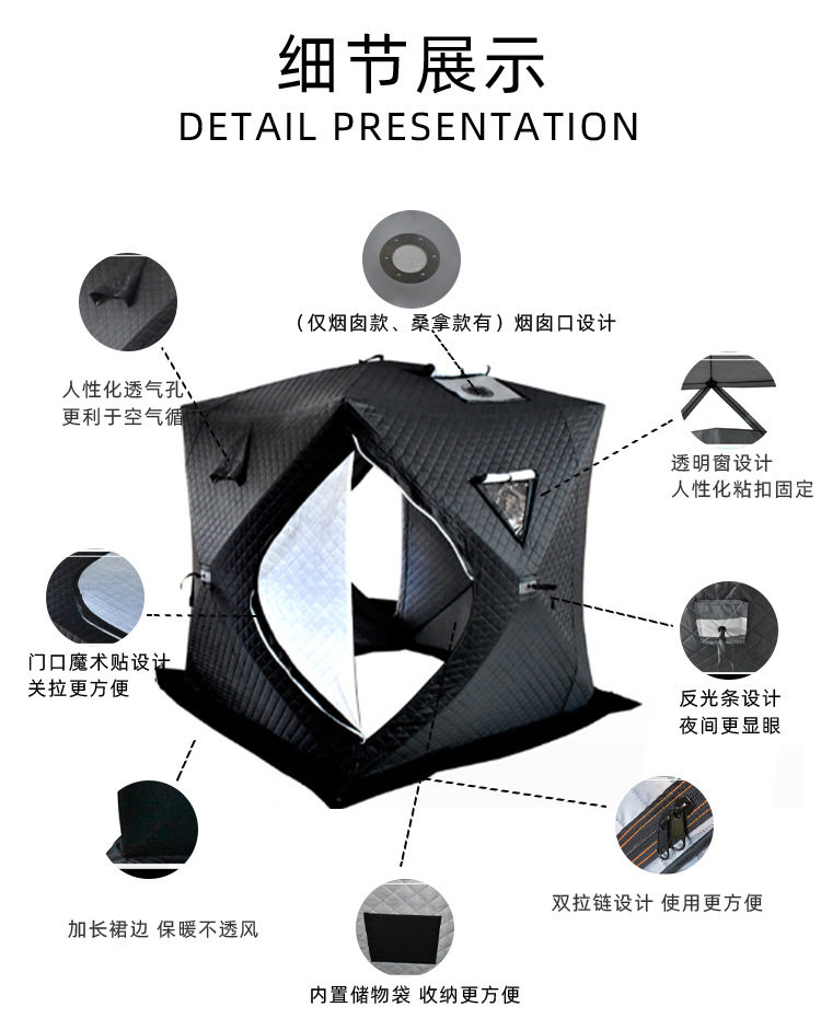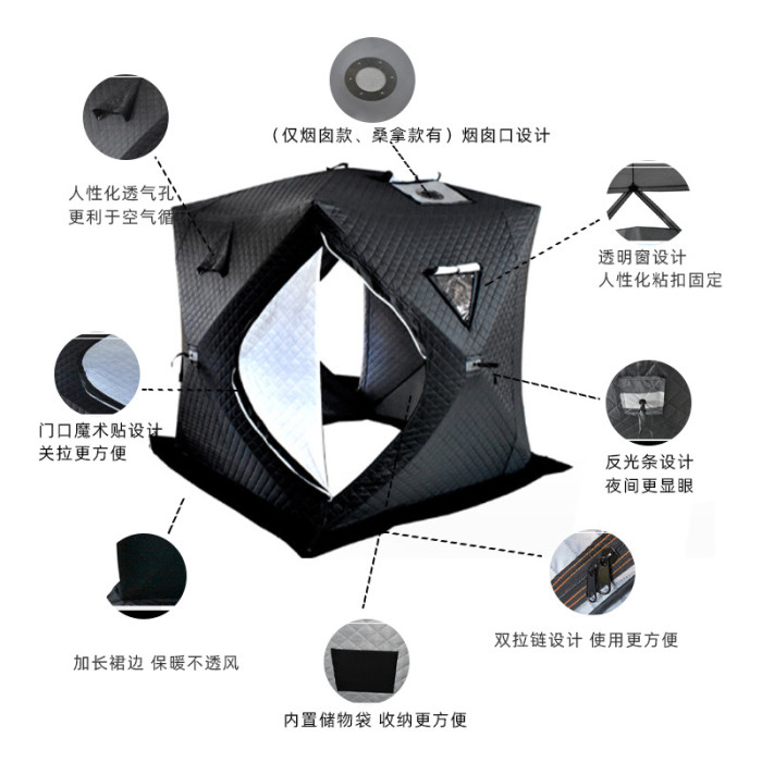 冬季戶外棉帳篷露營冰釣雪釣速開加厚防寒保暖免搭建煙囪桑拿帳篷