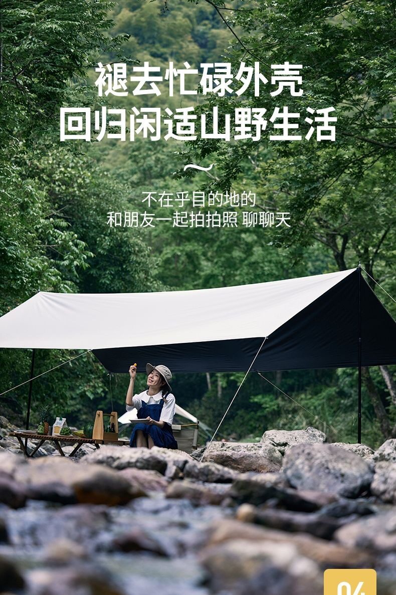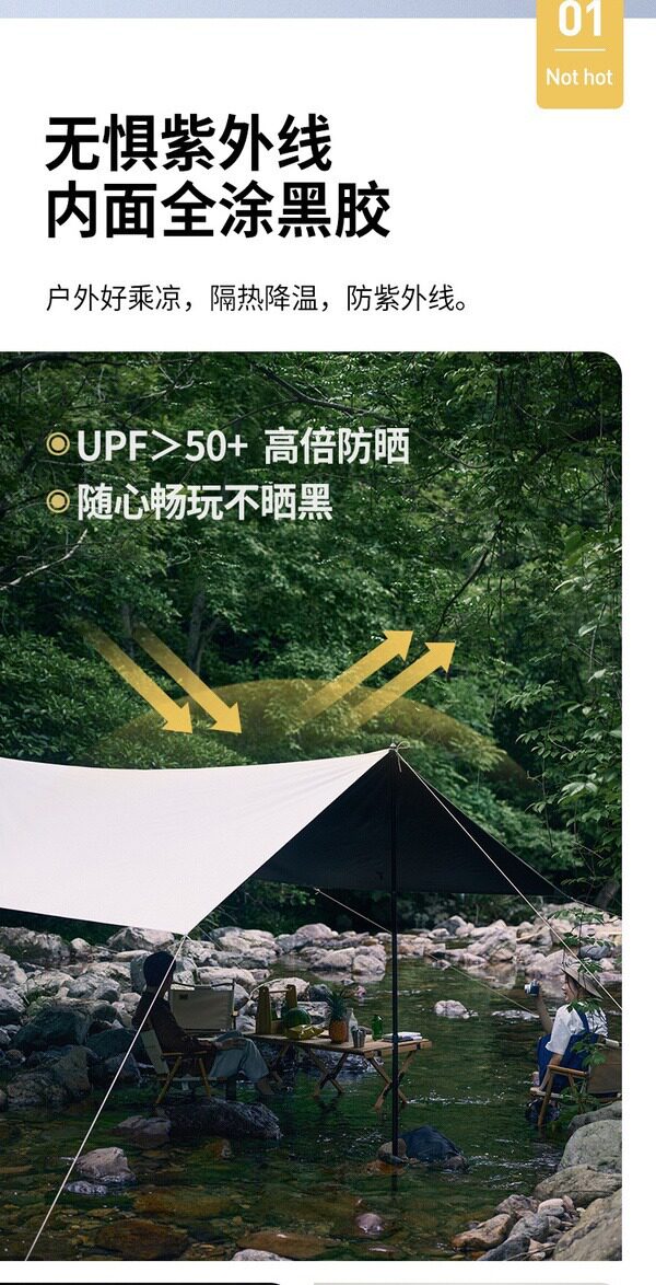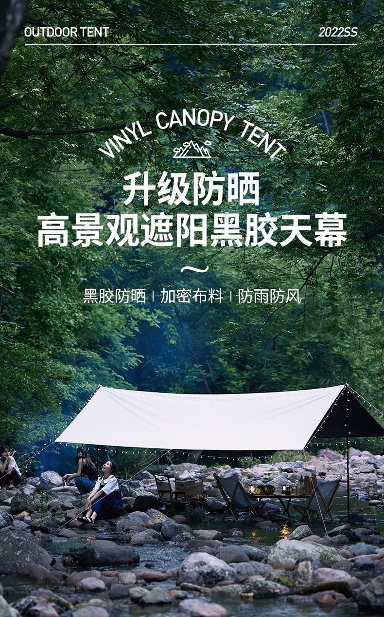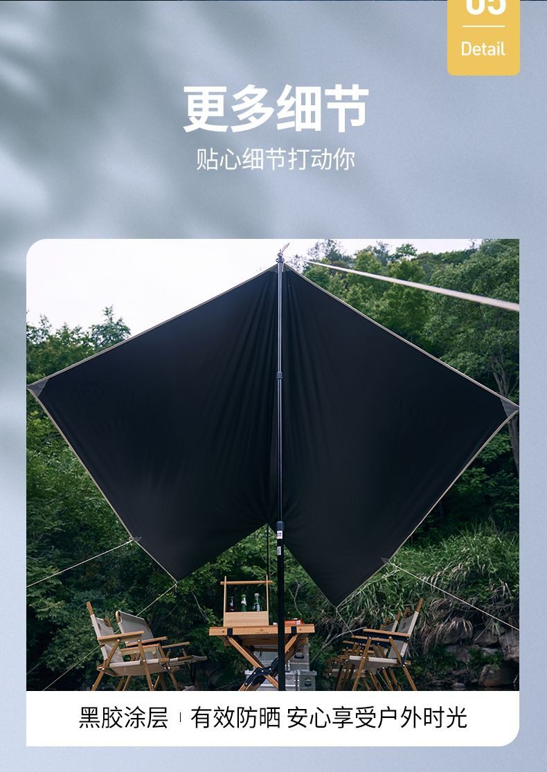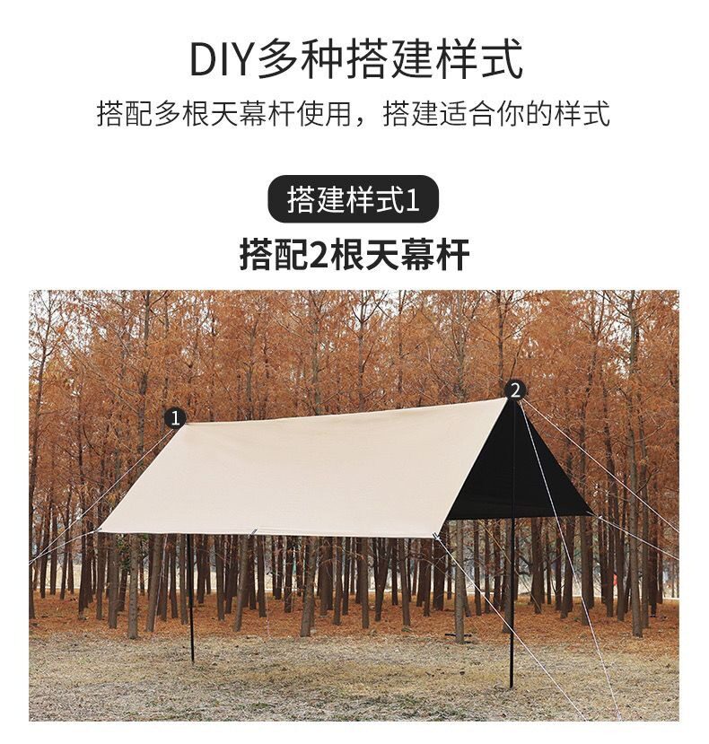 夏季戶外露營天幕帳篷加厚塗層防雨防曬遮陽黑膠天幕可攜式野營篷
