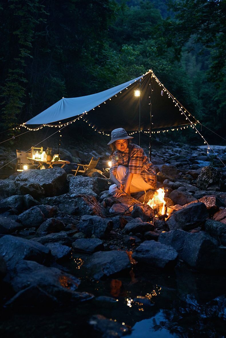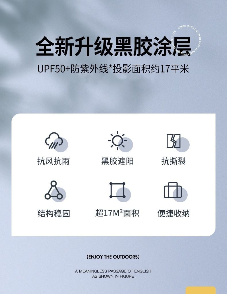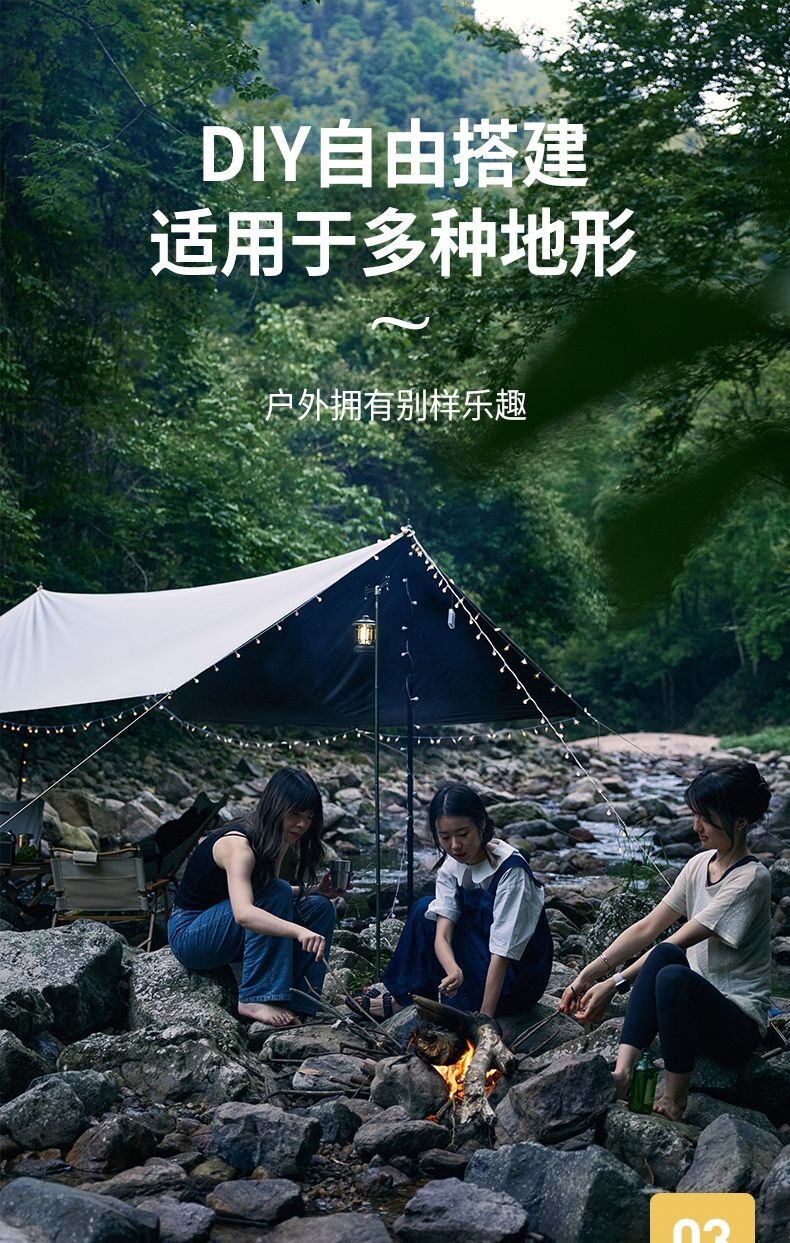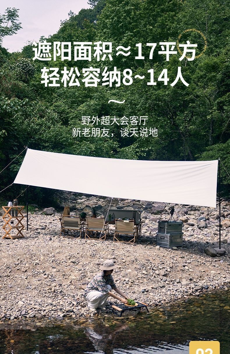 夏季戶外露營天幕帳篷加厚塗層防雨防曬遮陽黑膠天幕可攜式野營篷