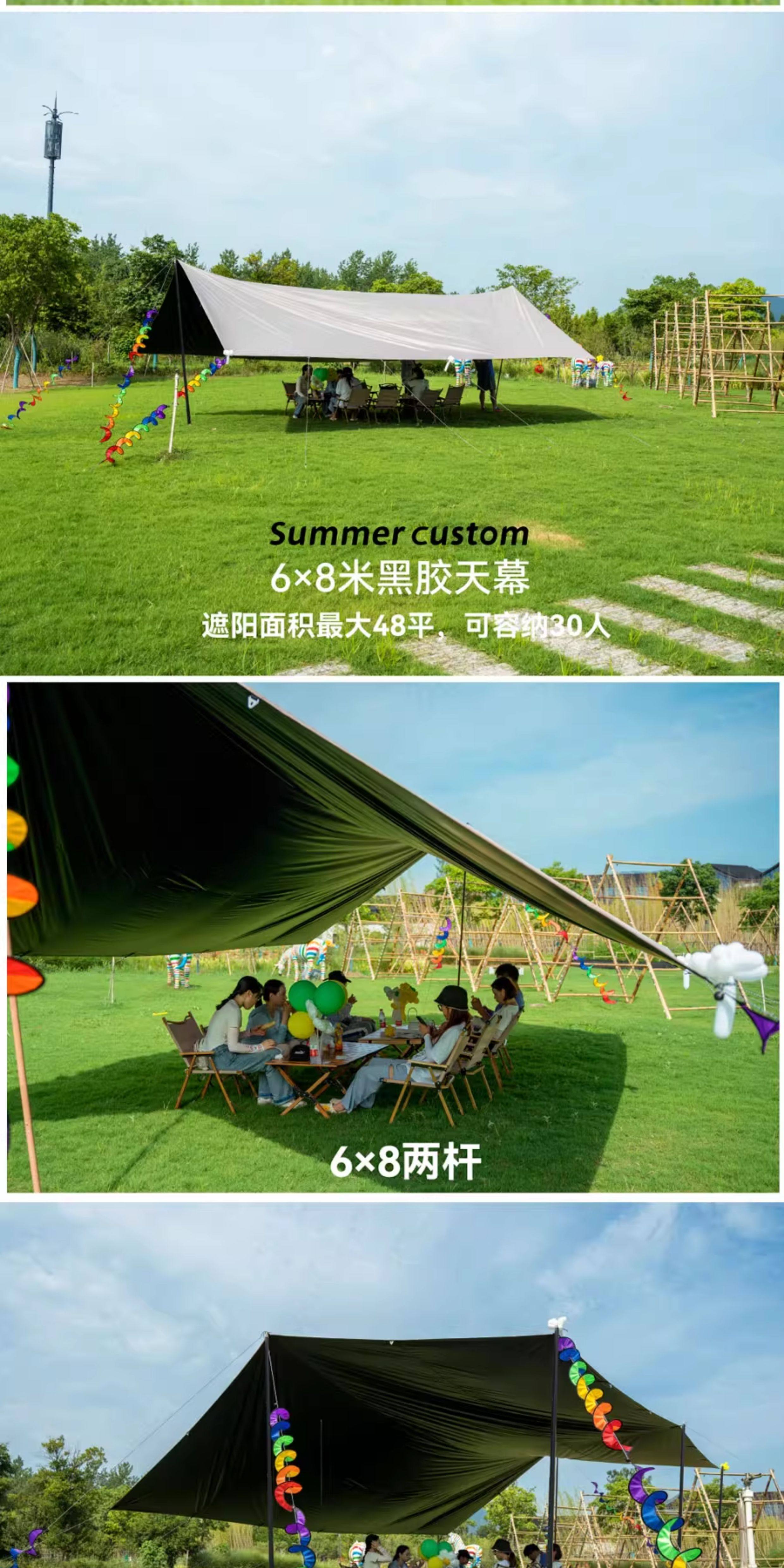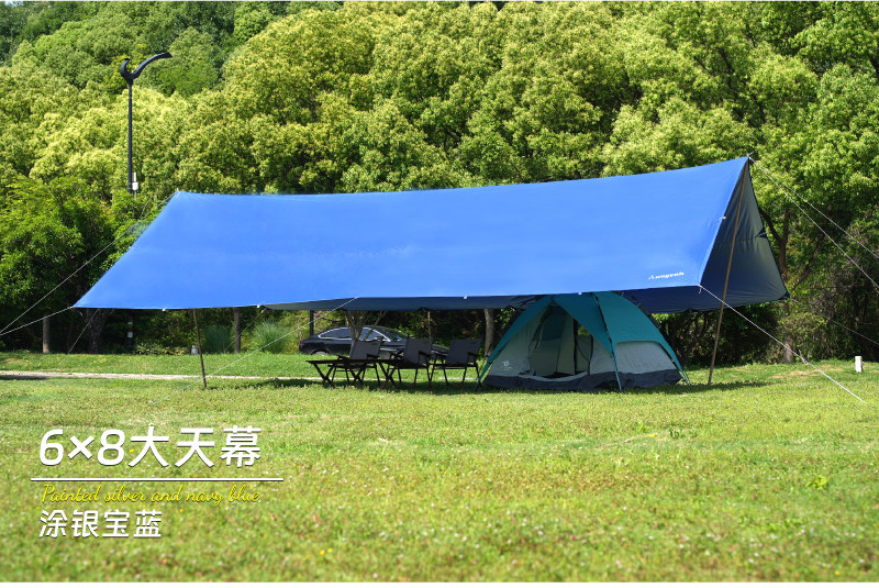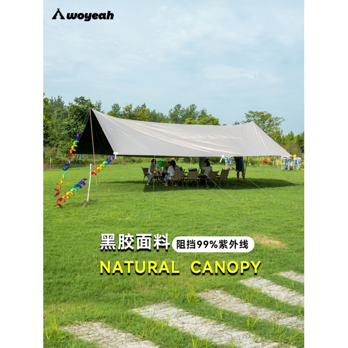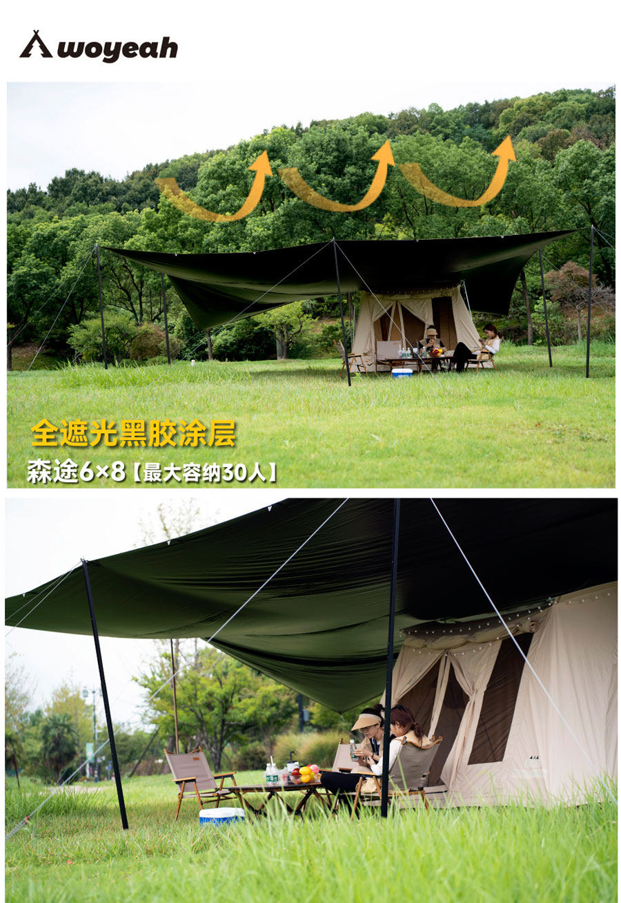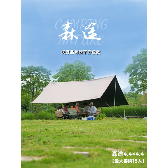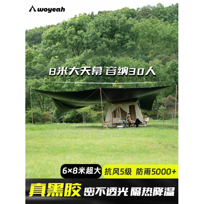 沃野戶外6*8米全遮光黑膠天幕露營沙灘加厚涼棚防雨防曬20-30人