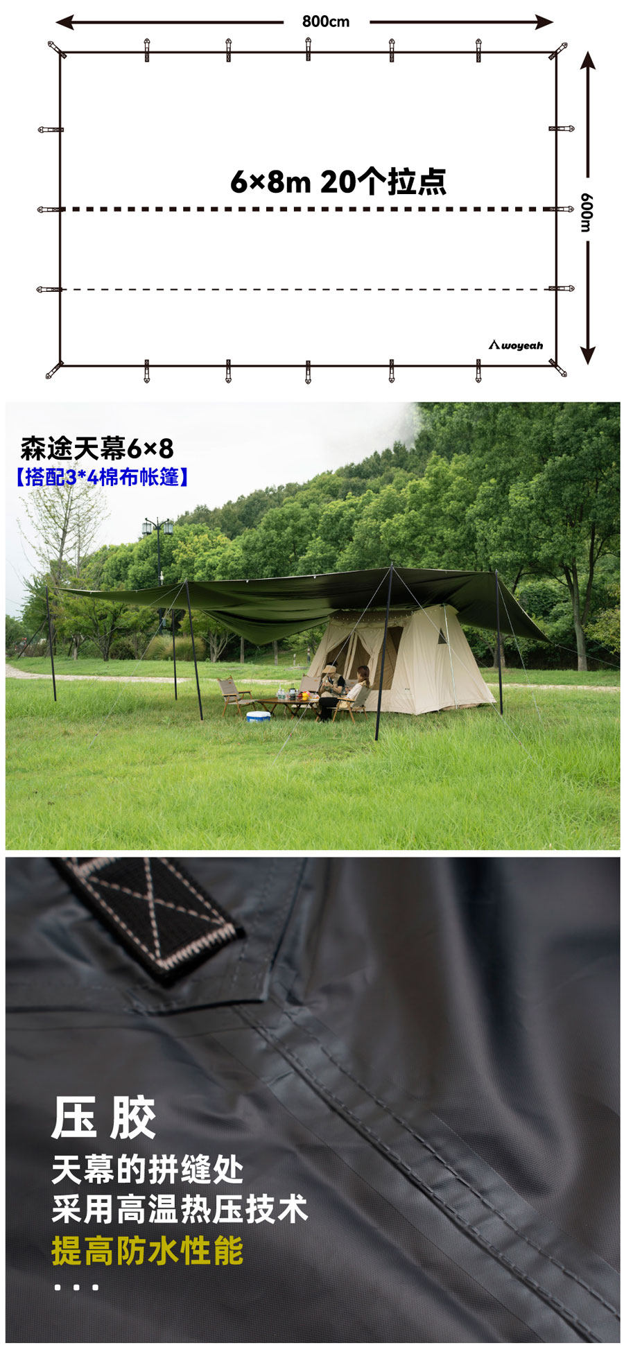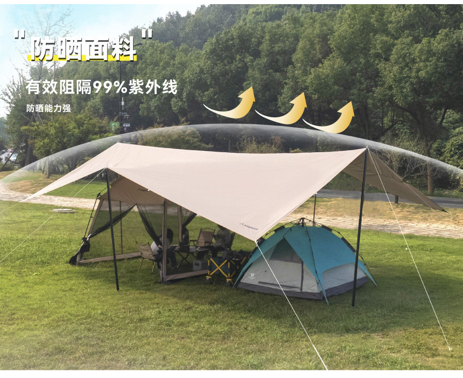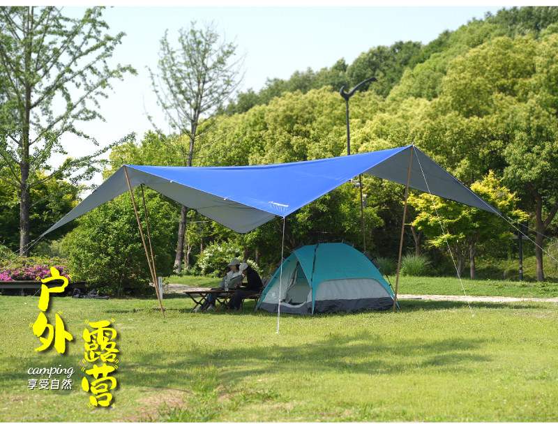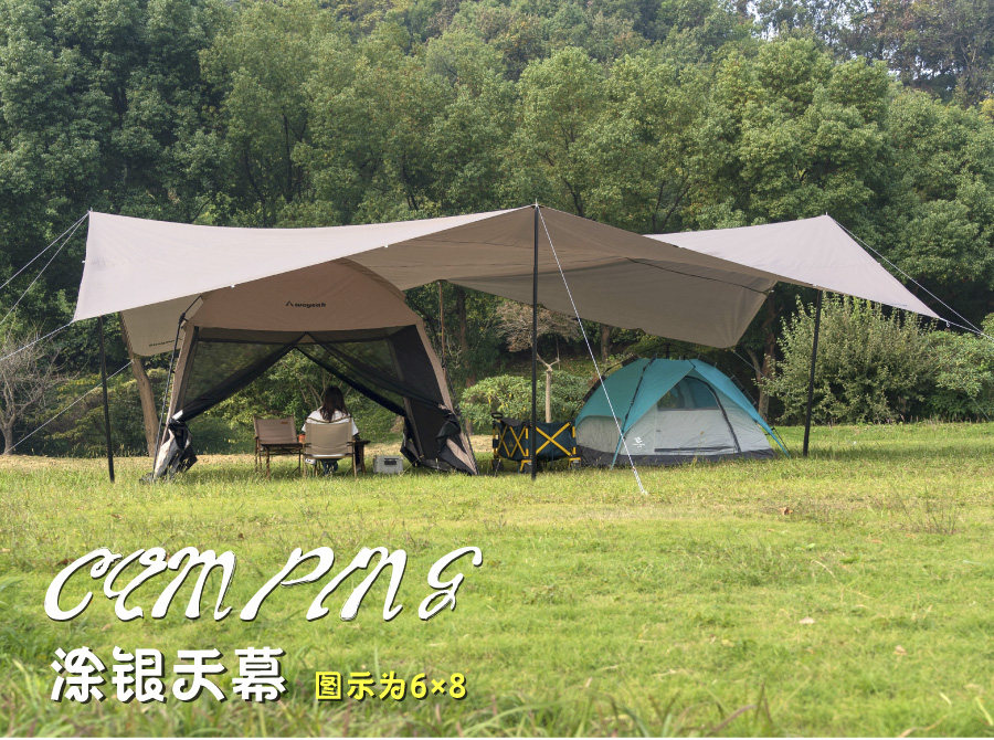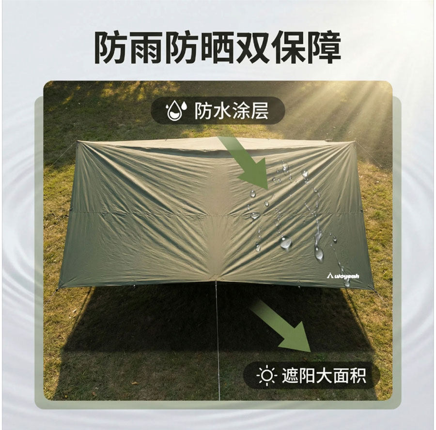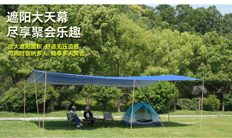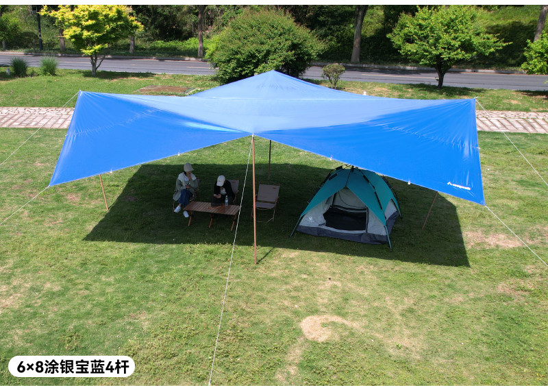 沃野戶外6*8米全遮光黑膠天幕露營沙灘加厚涼棚防雨防曬20-30人