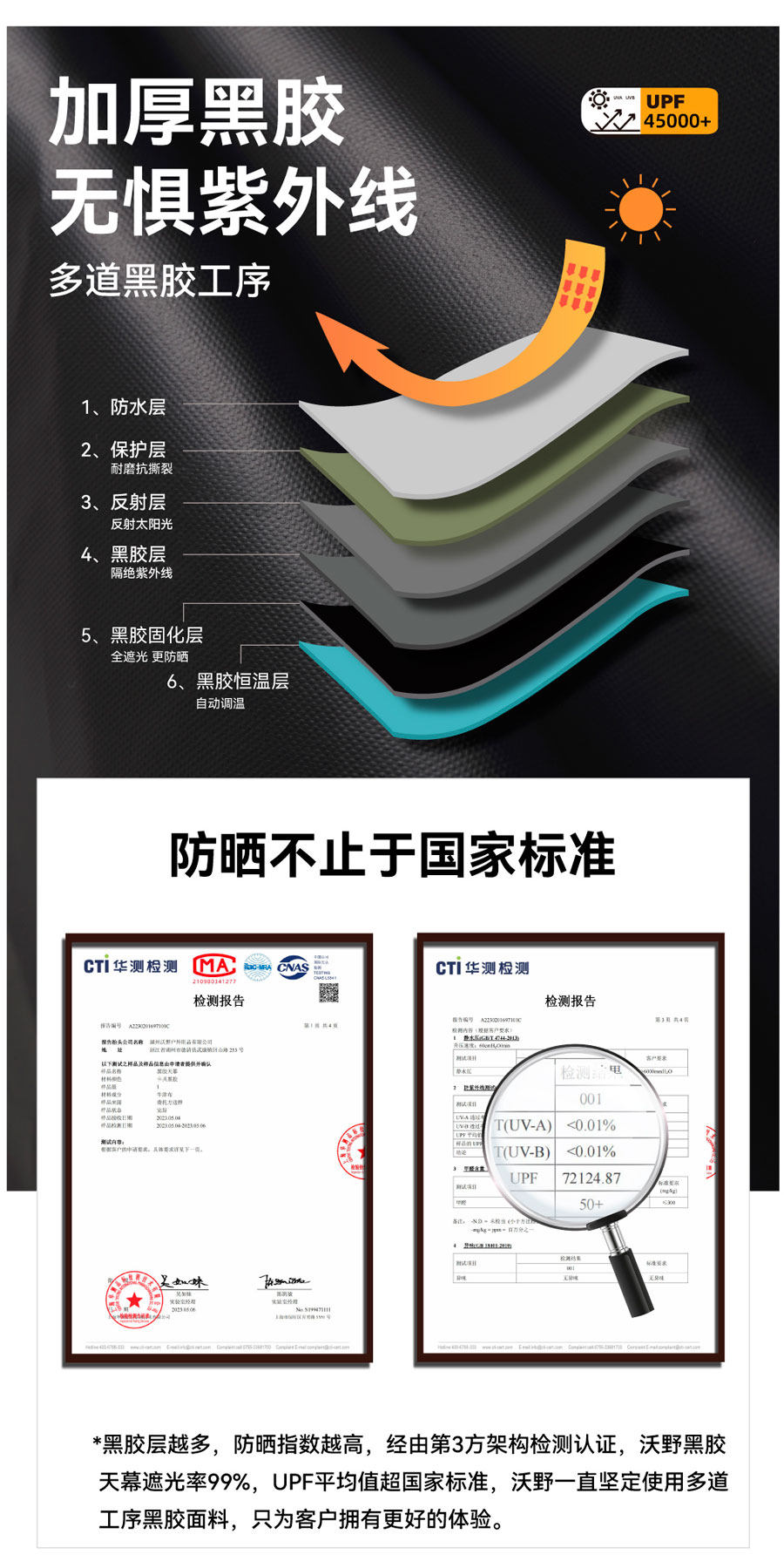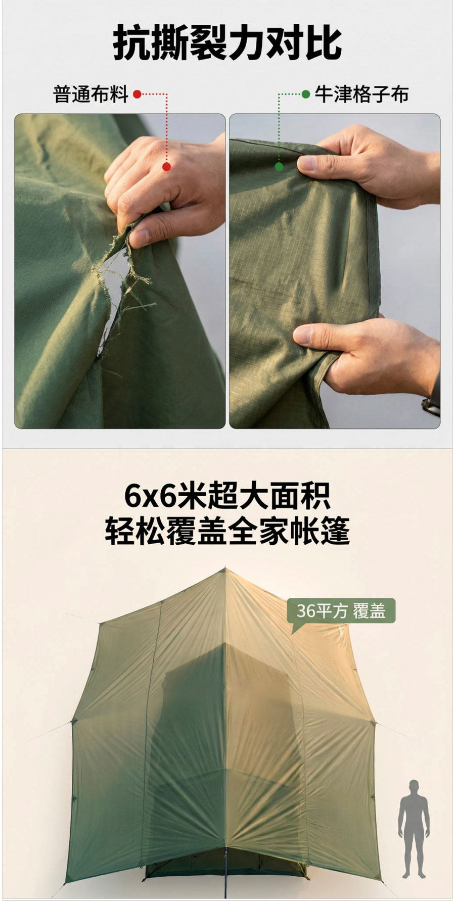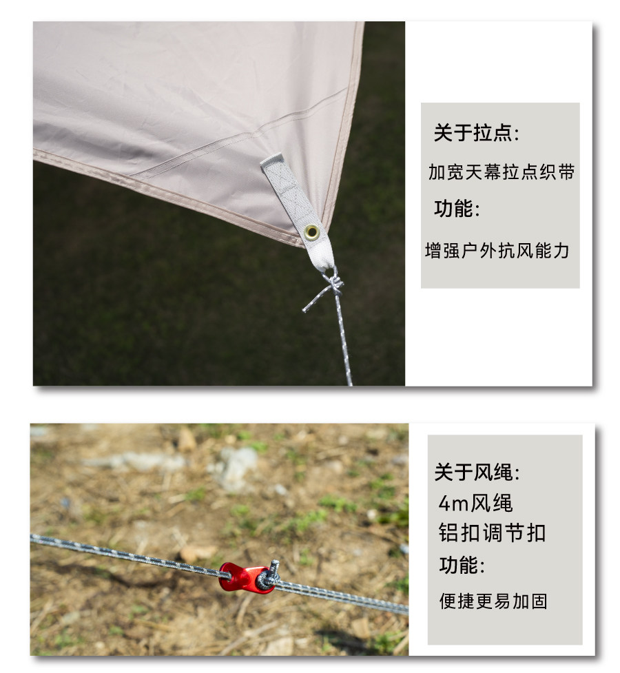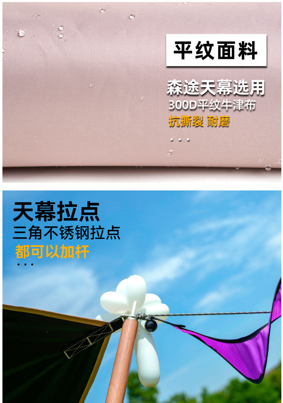 沃野戶外6*8米全遮光黑膠天幕露營沙灘加厚涼棚防雨防曬20-30人