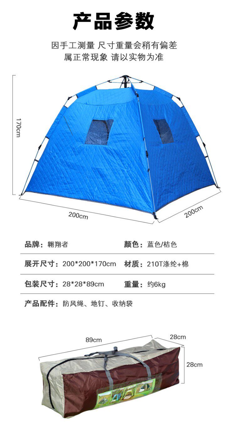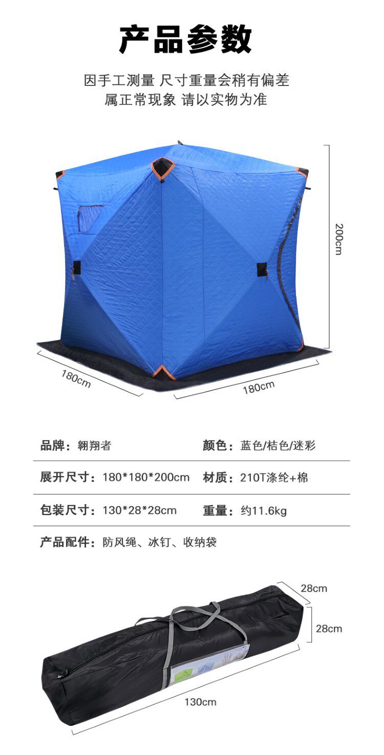 冰釣帳篷冬釣防寒專用加棉釣魚屋加厚保暖禦寒戶外遊露營速開