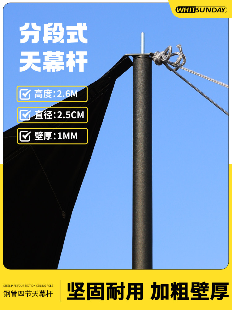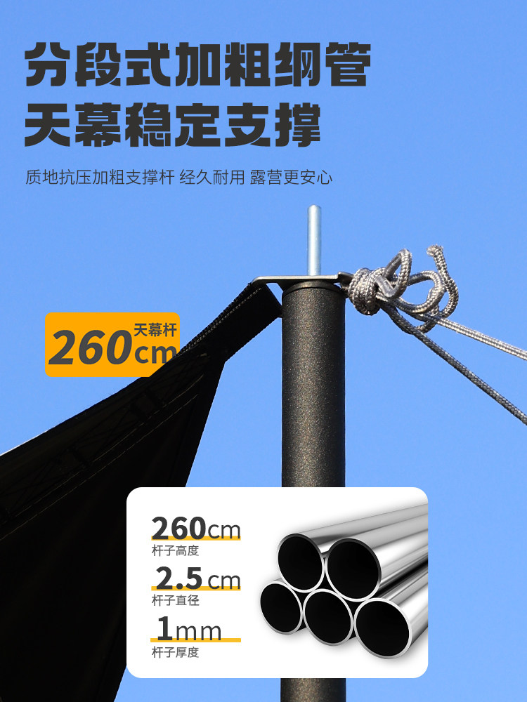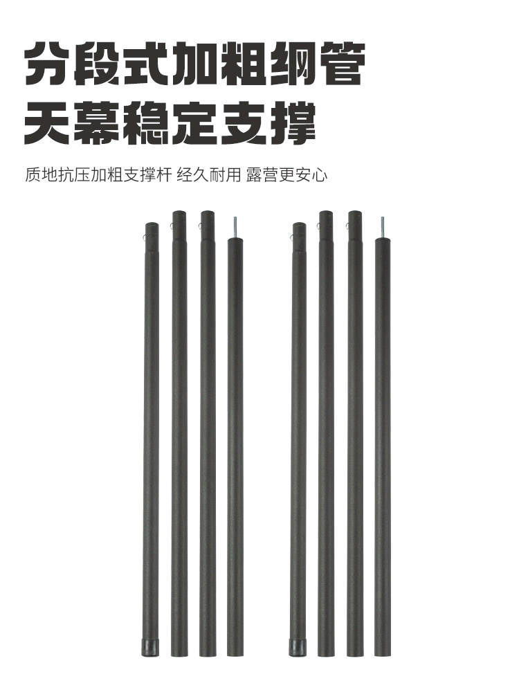 天幕桿4節鐵琯支架戶外露營帳篷門廳支撐桿加粗桿超長2.4m