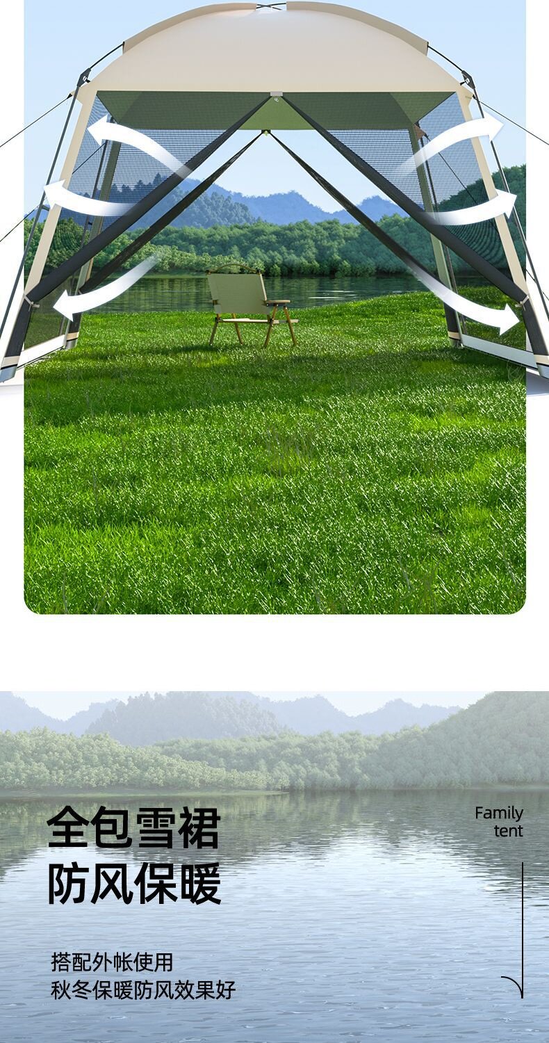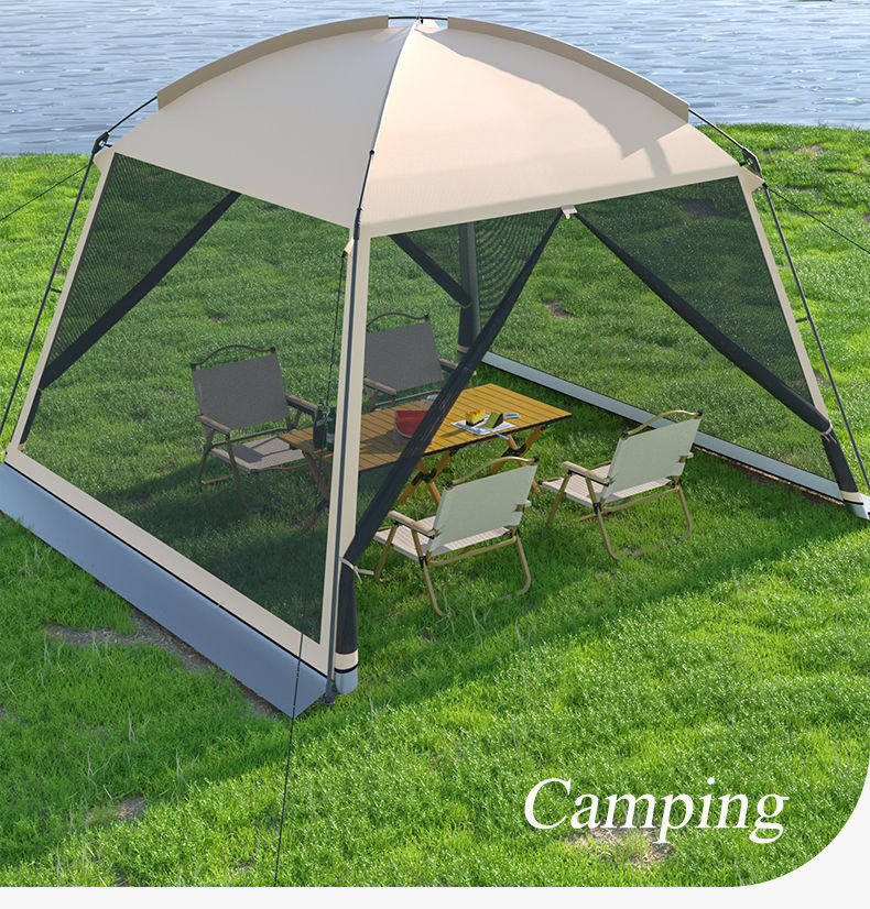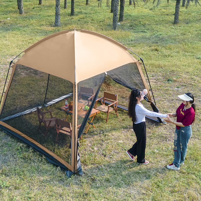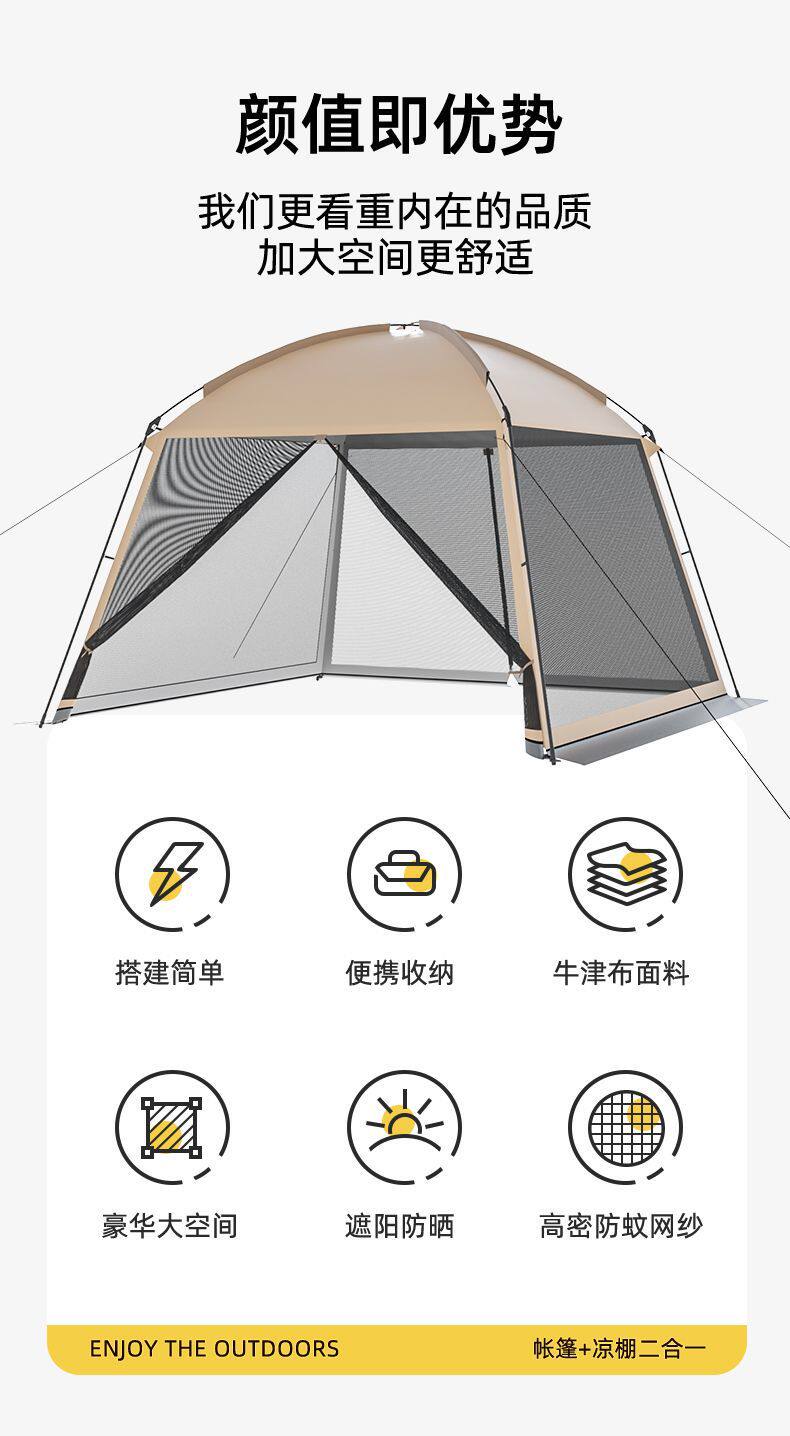 戶外網紗遮陽帳篷多人露營一體式天幕燒烤沙灘野營防曬防蚊蟲涼棚