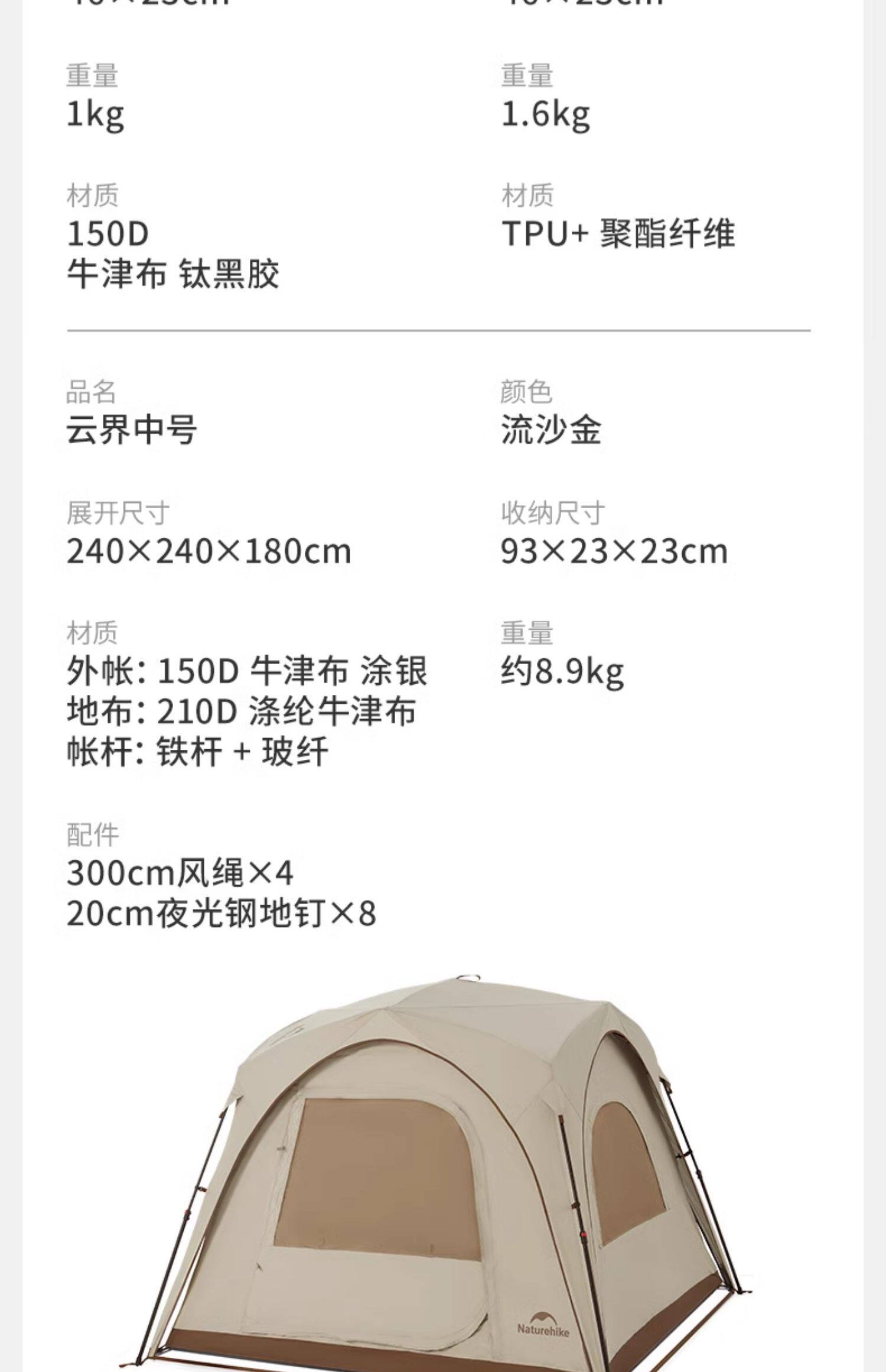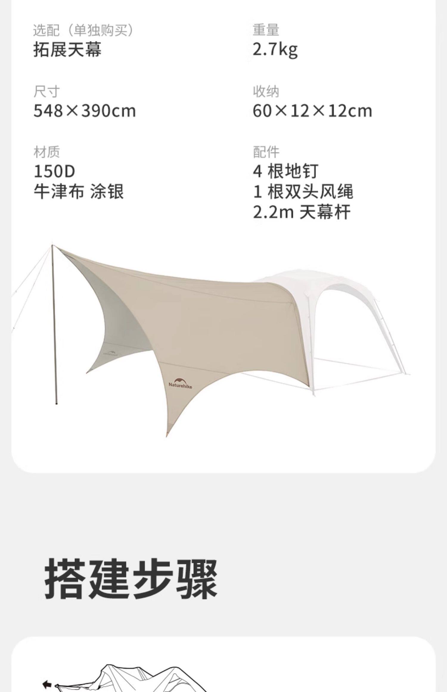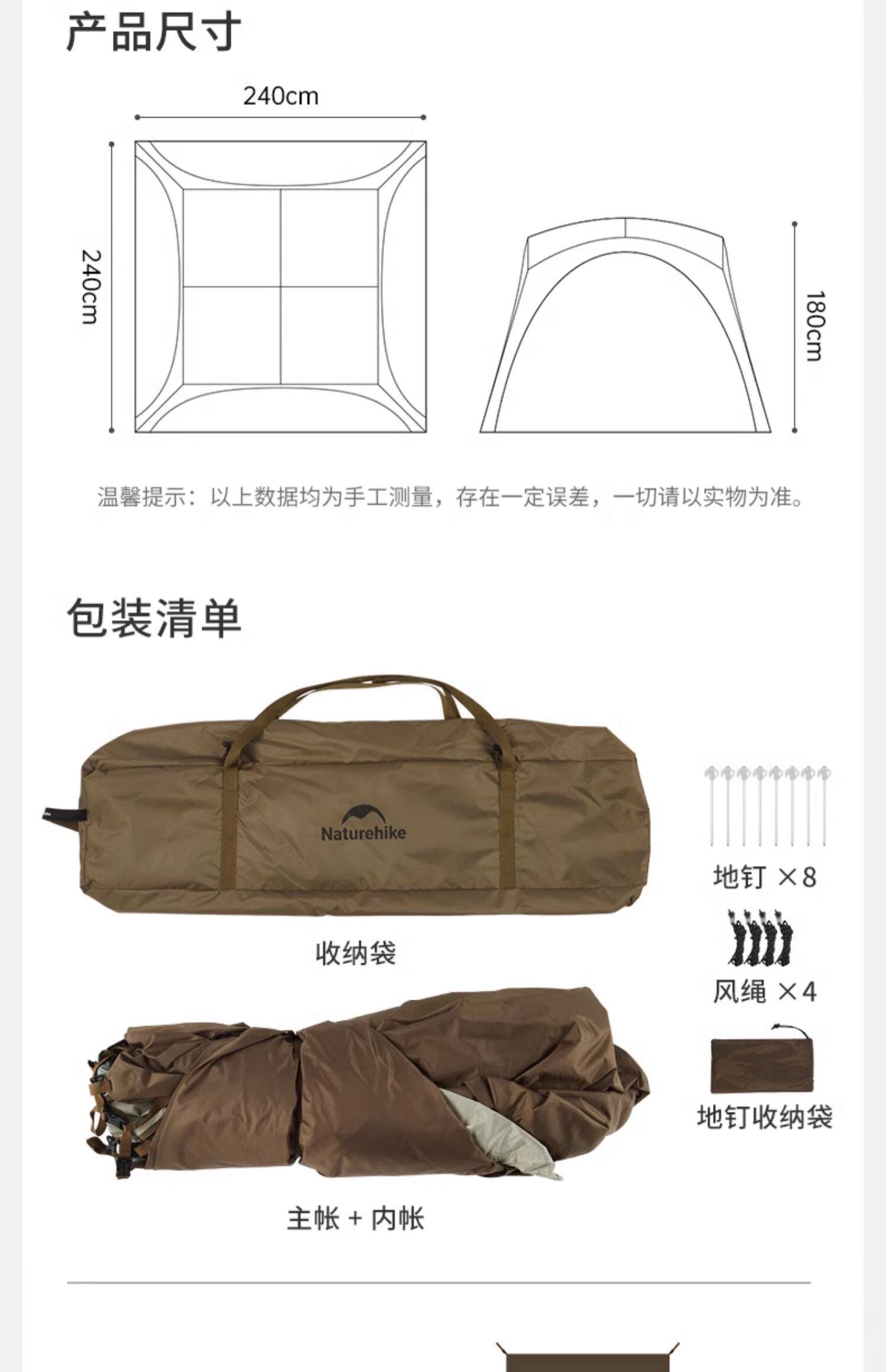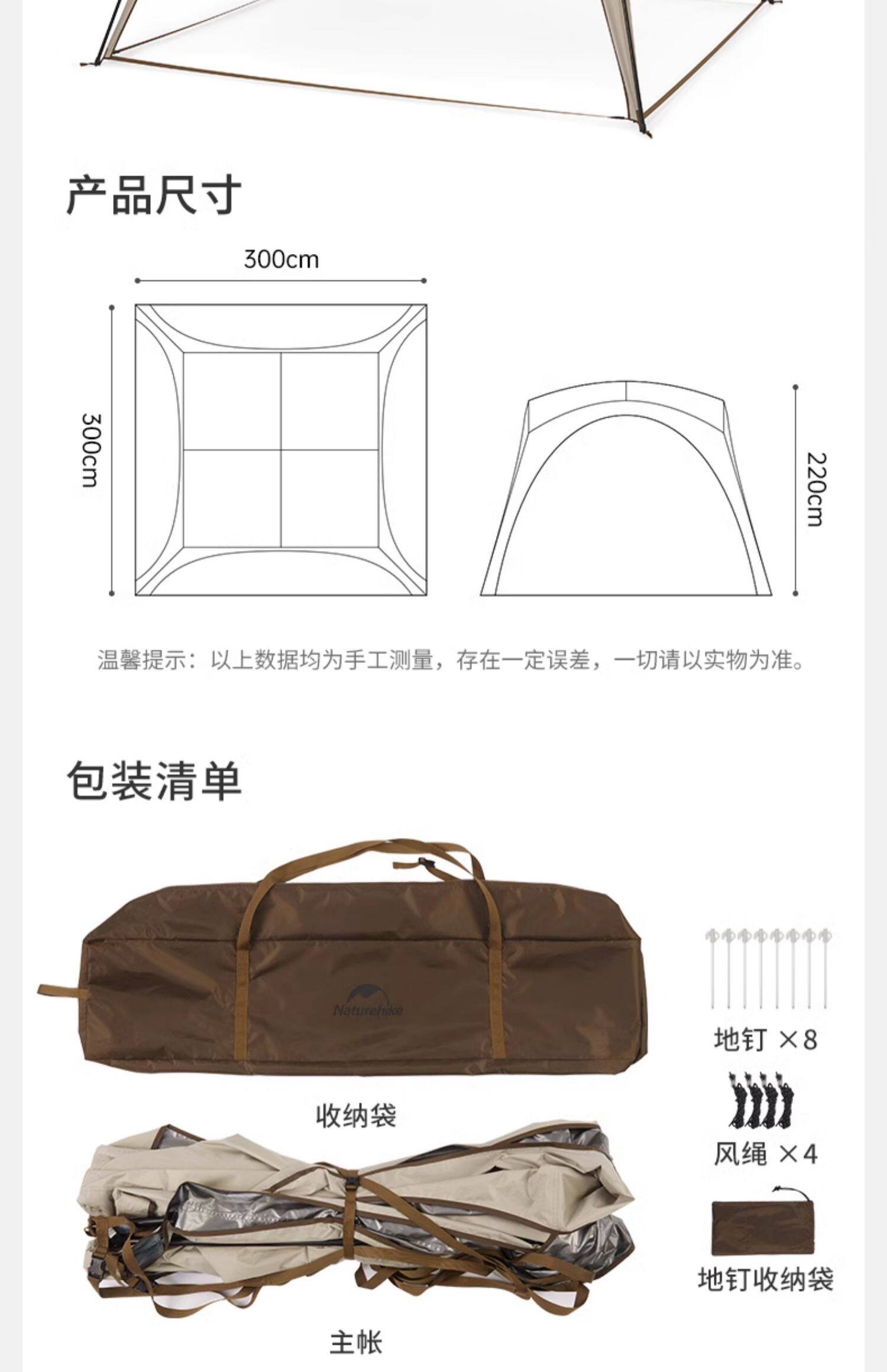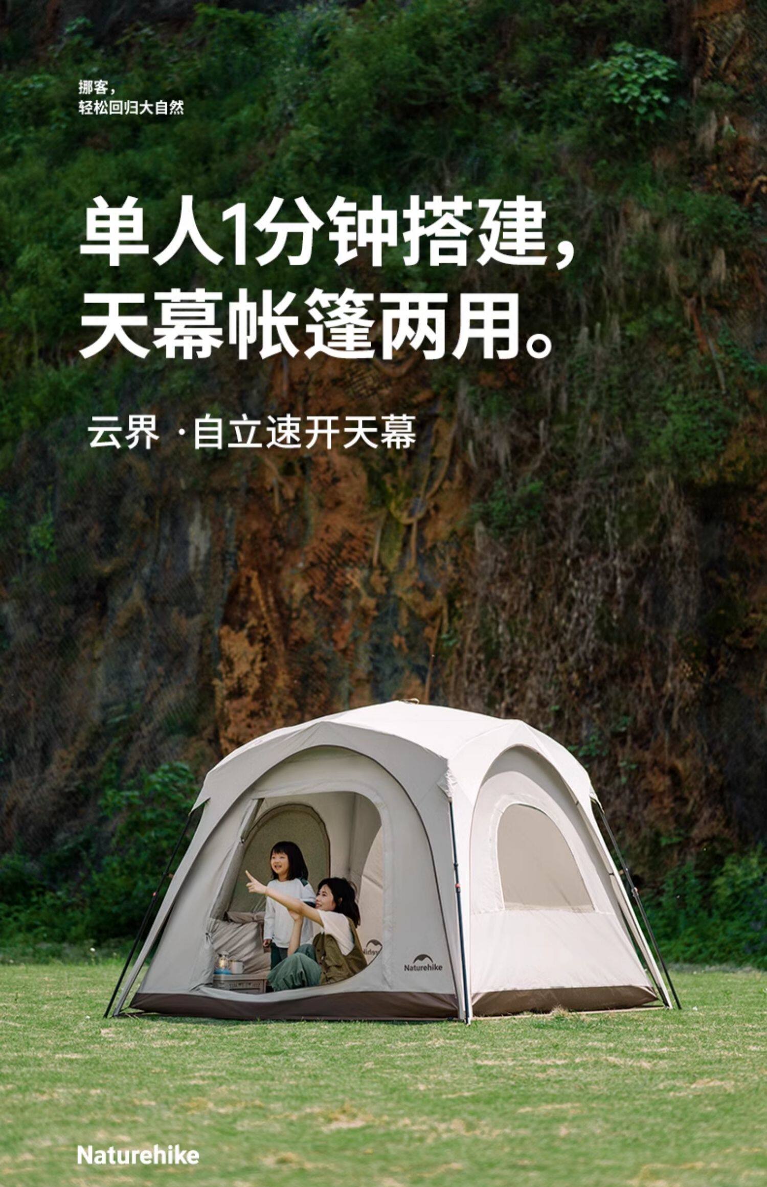 Naturehike挪客雲界中號穹頂速開天幕帳篷戶外露營防曬黑膠遮陽棚