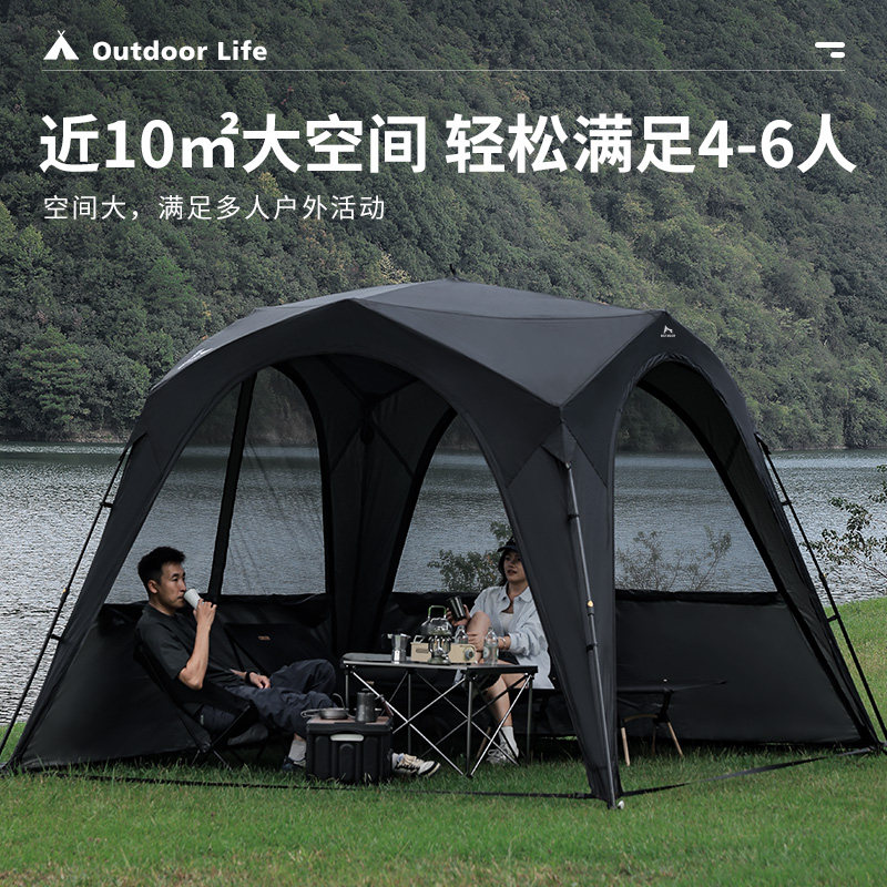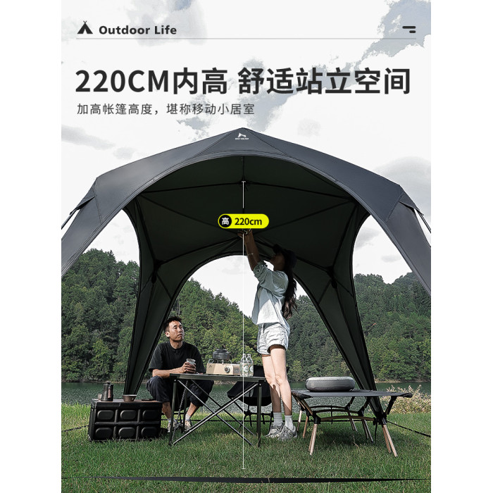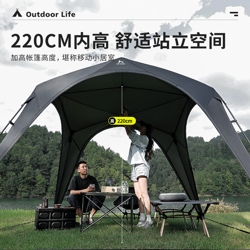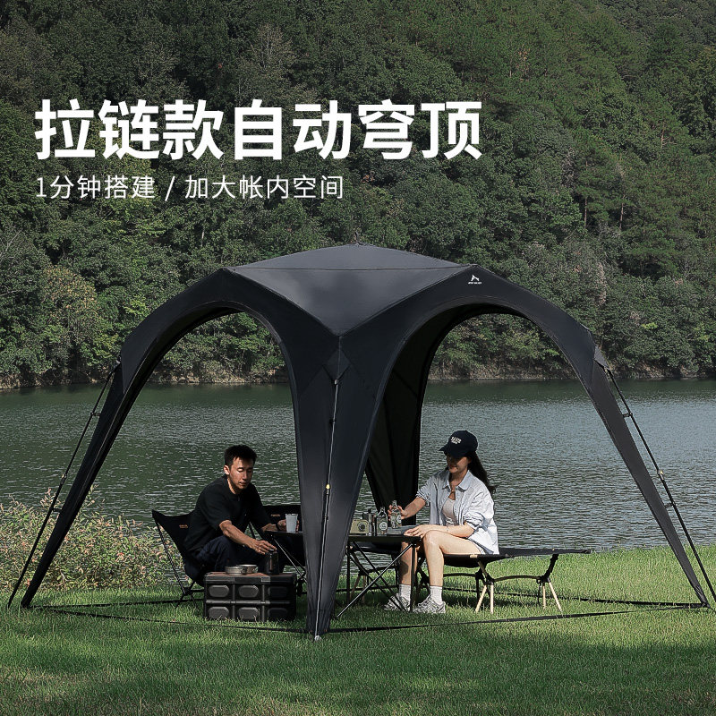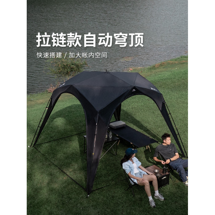 狼行者拉鍊自動速開穹頂天幕一體式帳篷戶外露營鈦黑膠遮陽棚防曬