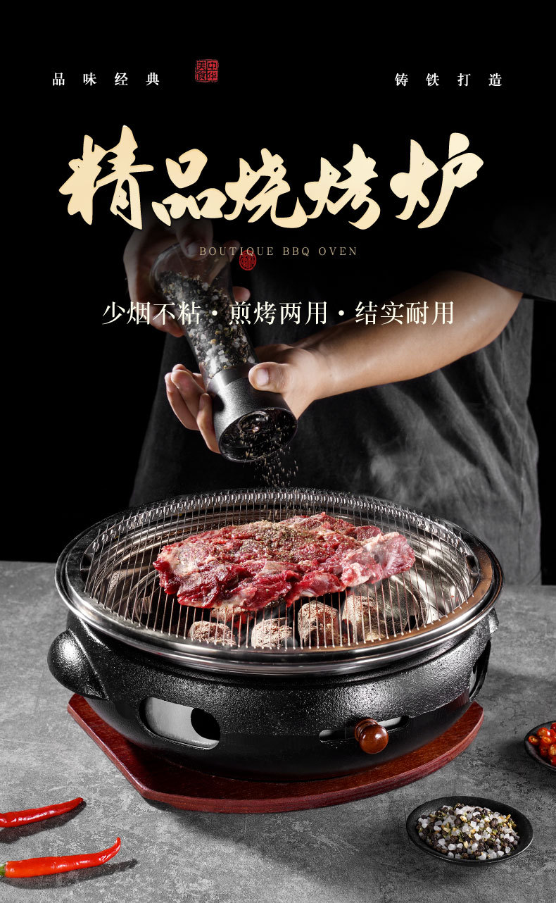 韓式鑄鐵烤肉爐日式無煙烤爐商用圓形家用木炭碳火戶外烤肉上排菸