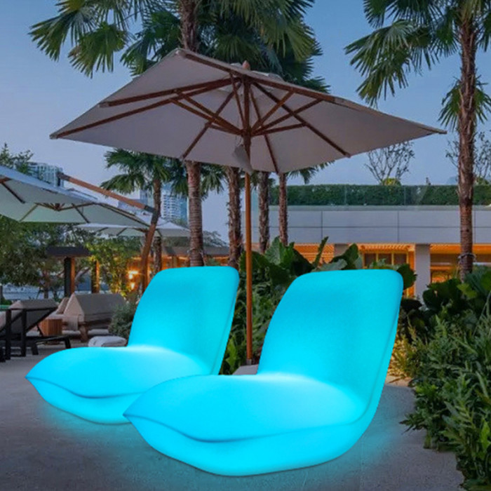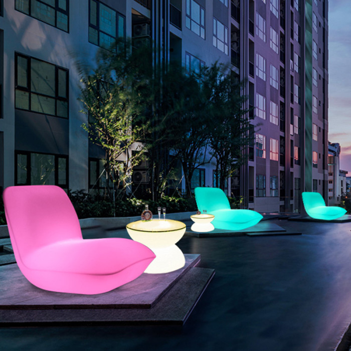 led發光休閒椅網紅沙灘景觀塑膠沙發靠背椅立方體發光酒吧茶幾桌