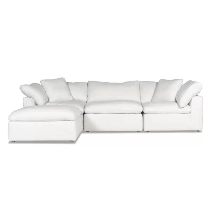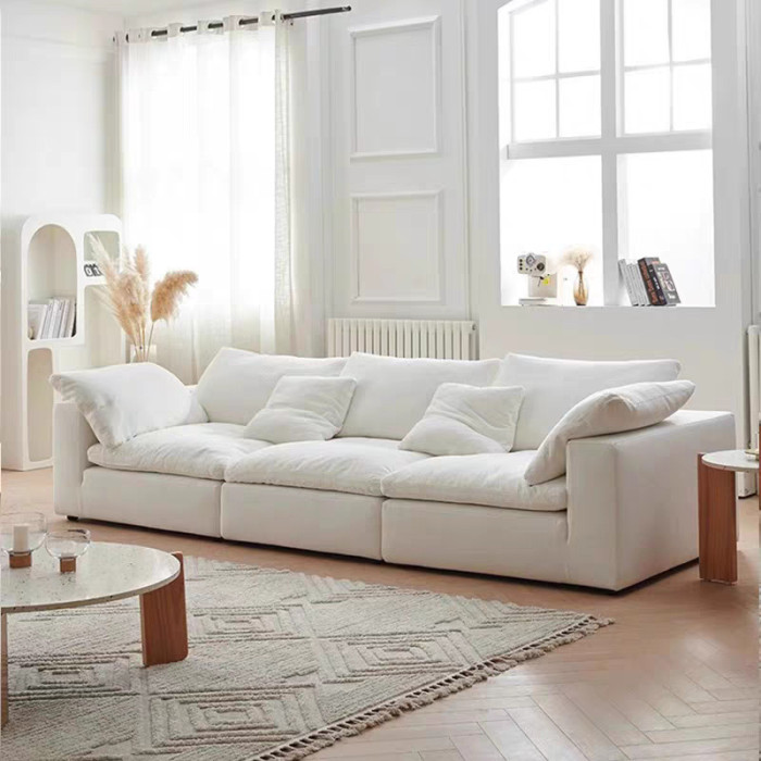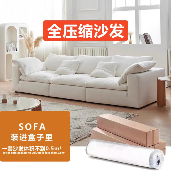 壓縮海綿沙發設計師奶油侘寂風雲沙發棉麻直排布藝沙發自由組合
