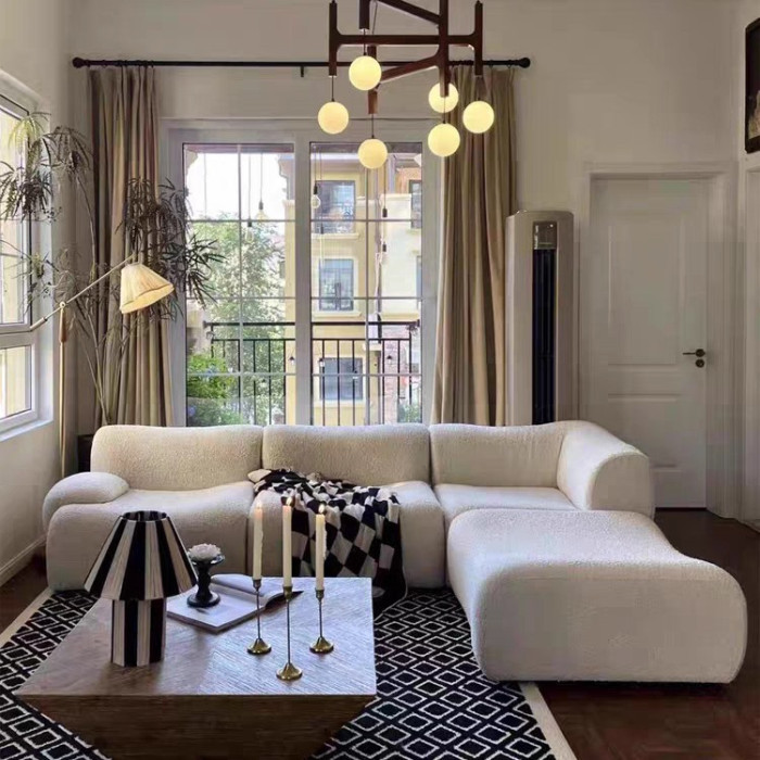 萊米壓縮沙發客廳落地異形轉角自由組合復古風模塊布藝沙發羊羔絨