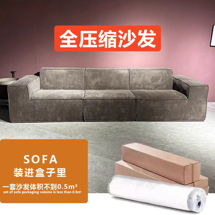真空壓縮模塊沙發燈芯絨布藝豆腐塊沙發全海綿定型家具直排