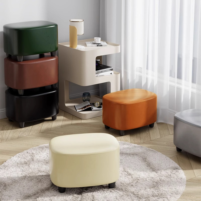 家用矮凳茶幾凳客廳沙發凳板凳門口穿鞋凳現代簡約腳踏創意皮凳子