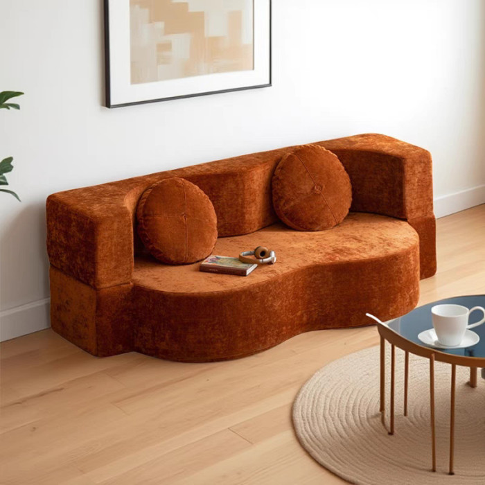 新款壓縮沙發床弧形復古風小戶型客廳可折曡懶人沙發床兩用