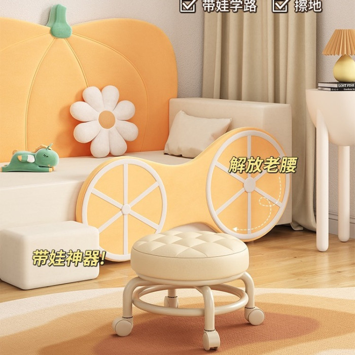 萬向輪小凳子護腰家用加厚靜音軟包靠背小椅子滑輪矮凳移動久坐
