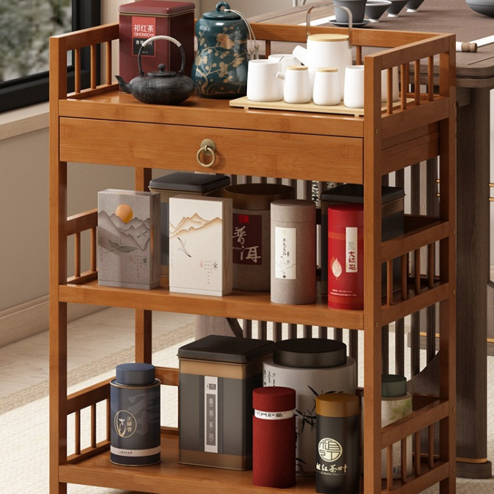 顔色 【茶色+抽屜&萬向輪】二層圍欄35長