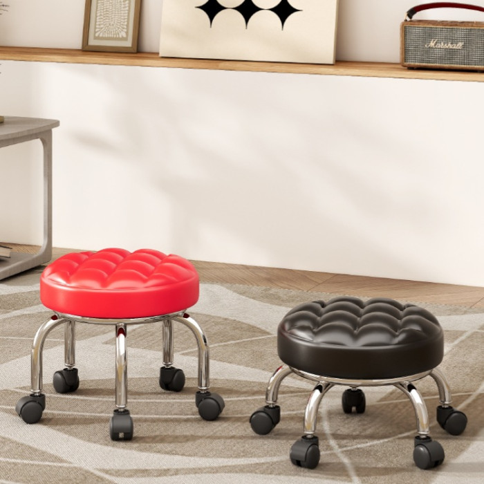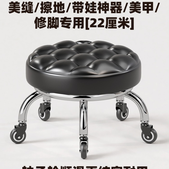 滑輪矮凳美縫兒童帶娃學步美甲圓凳萬向輪帶輪小凳子家用移動