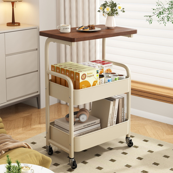 可移動茶幾零食小推車奶油風客廳沙發邊幾邊桌迷你床頭置物架桌子