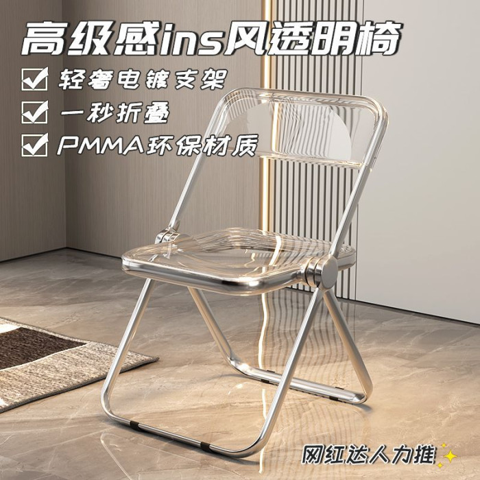 亞克力透明折曡椅子躺椅家用靠背宿舍椅現代簡約餐椅ins拍照椅子