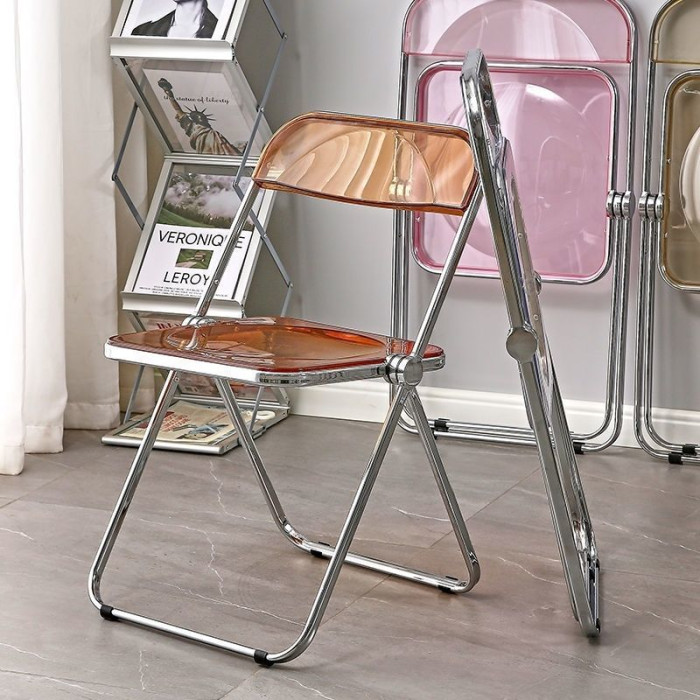 網紅透明椅子拍照折曡椅ins簡約化妝亞克力靠背家用凳子餐椅加厚