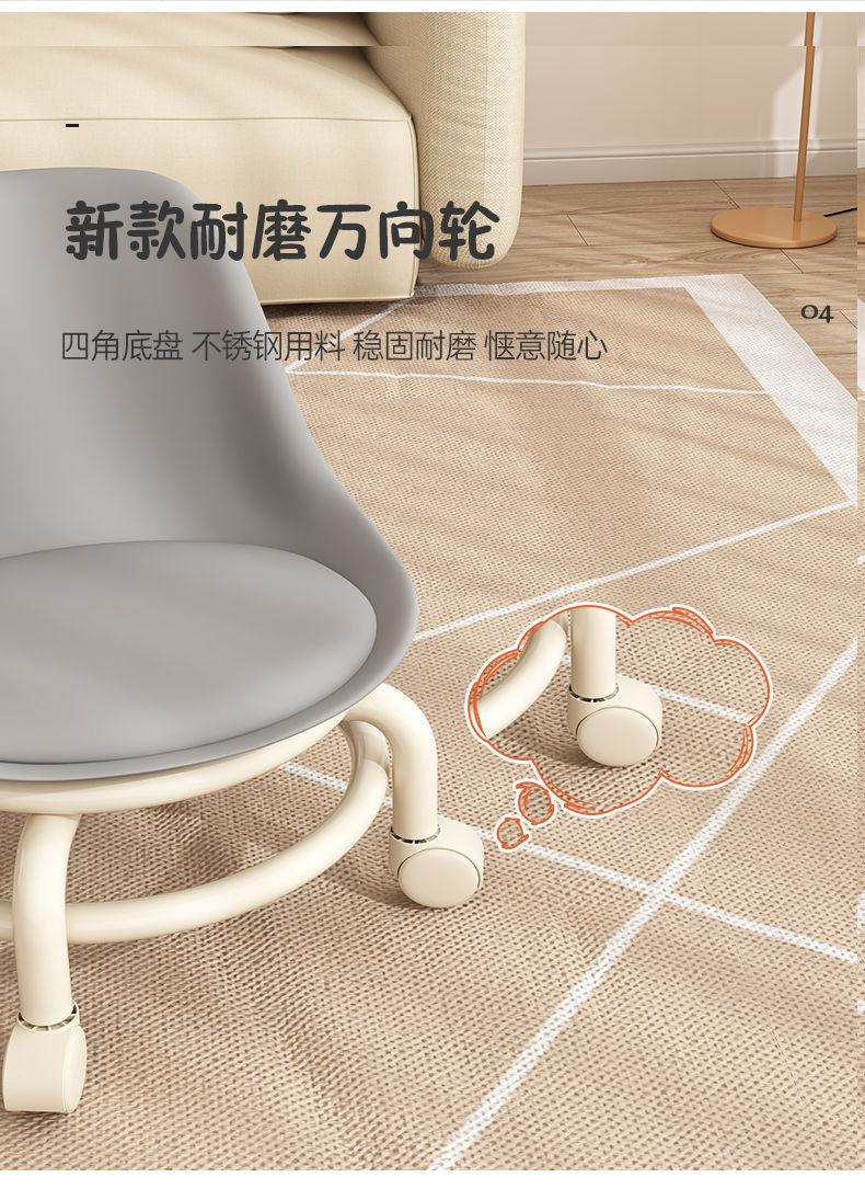 小凳子家用靠背滑輪凳客廳加厚板凳兒童萬向輪小椅子茶幾凳換鞋凳