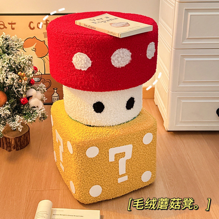 可愛毛絨蘑菇小凳子板凳家用客廳矮凳創意靜音腳墊結實耐用換鞋凳