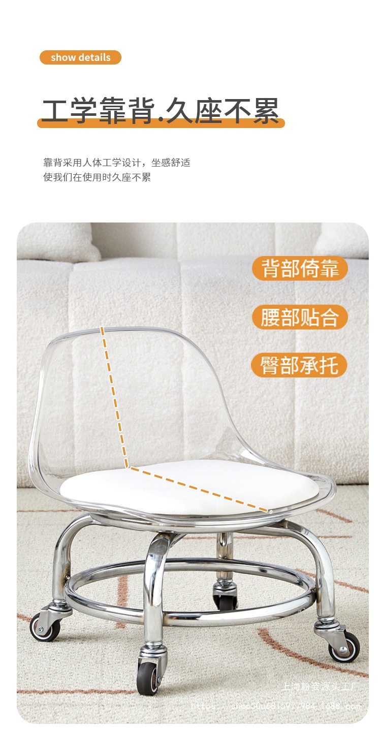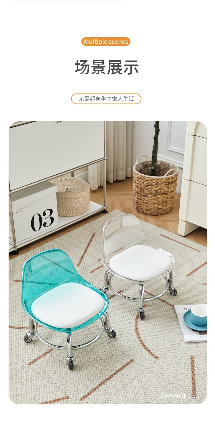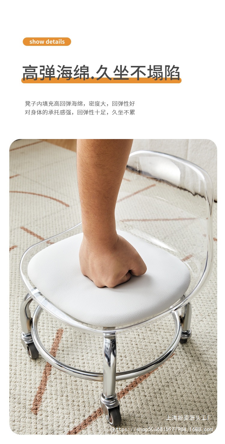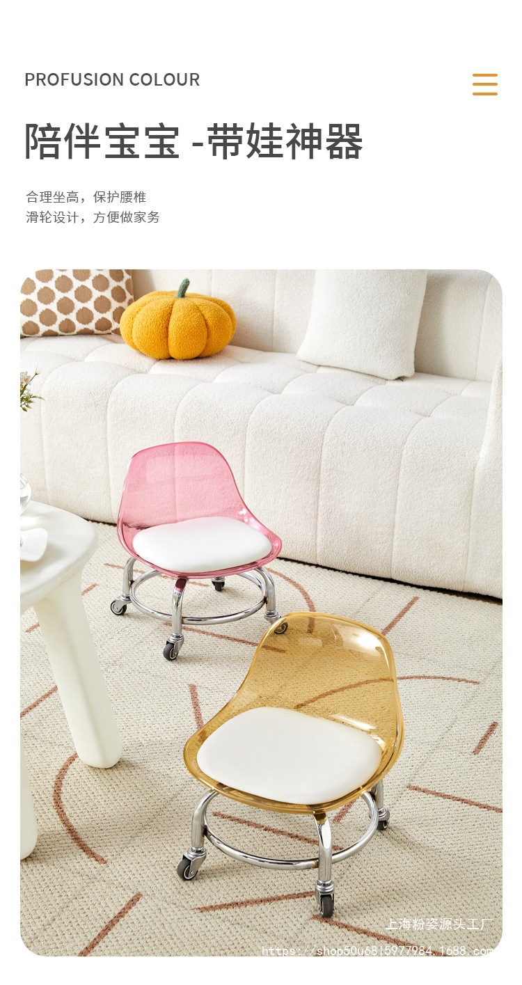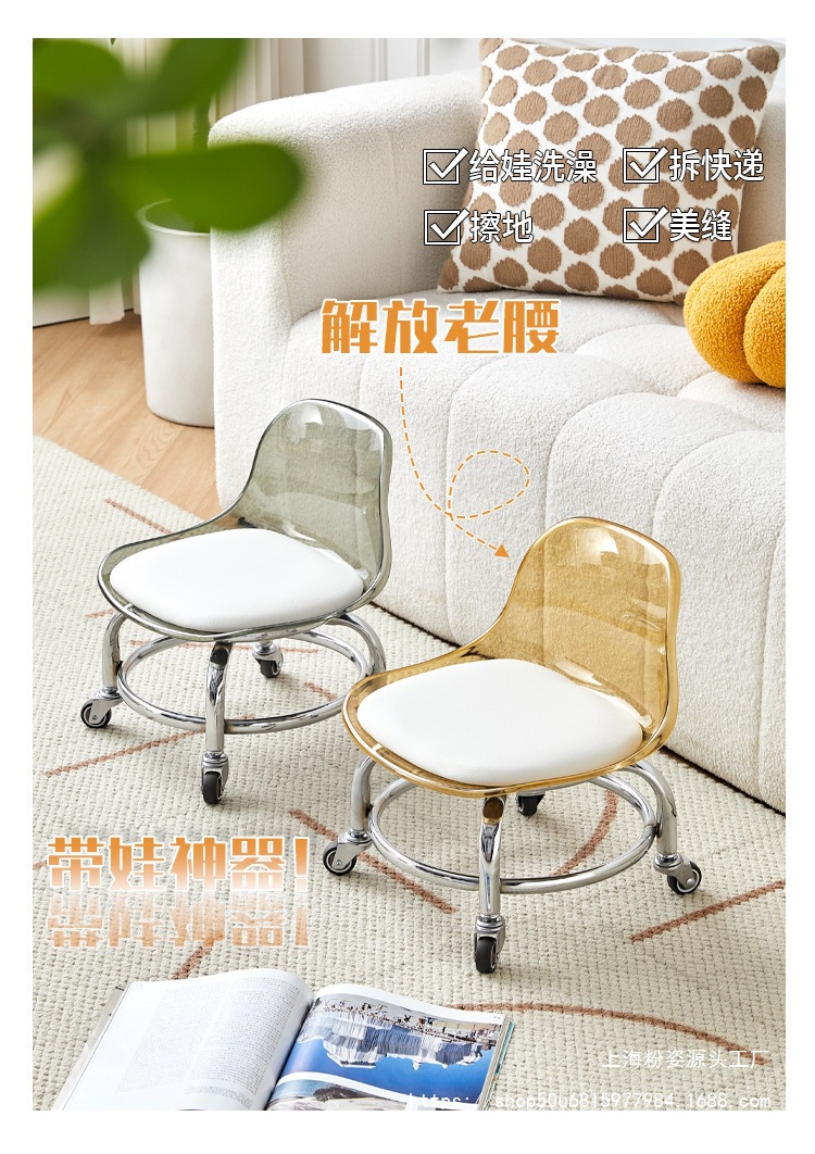 亞克力萬向輪矮凳靜音透明靠背小椅子帶娃滑輪矮凳子網紅換鞋凳子