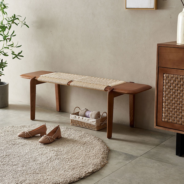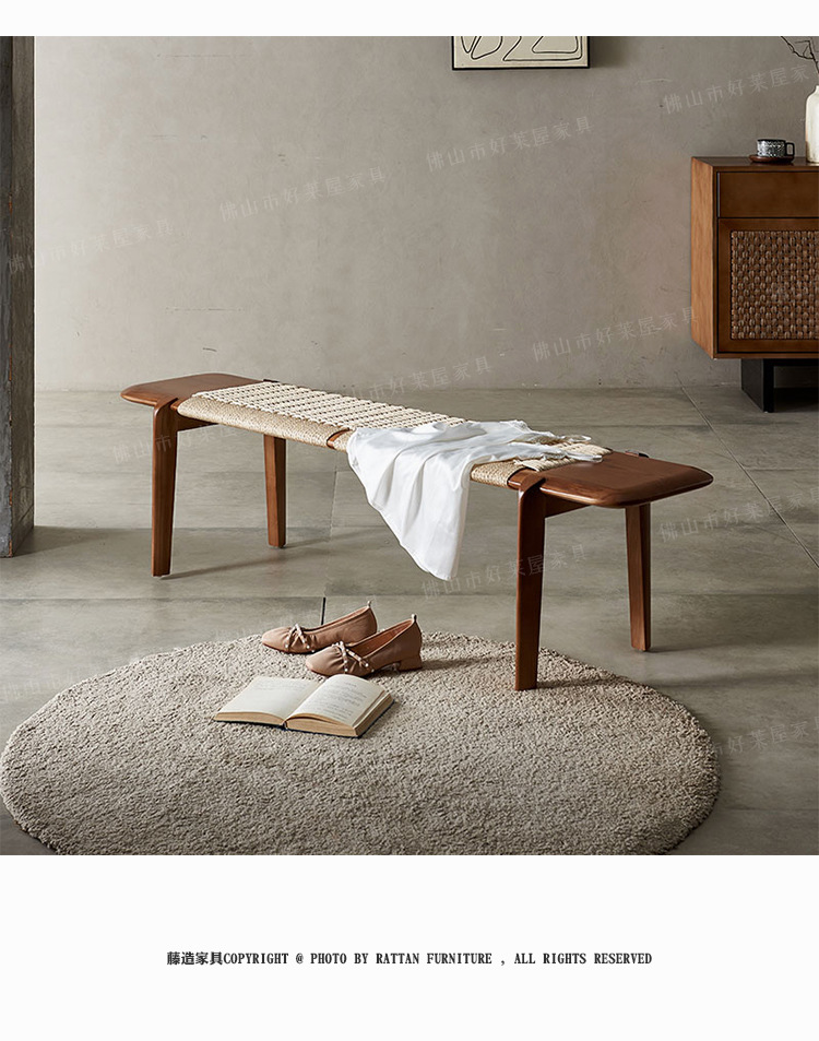 北歐藤編床尾凳臥室入戶試換鞋凳腳踏榻前床邊長條凳服裝店凳子