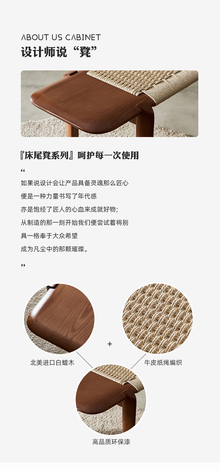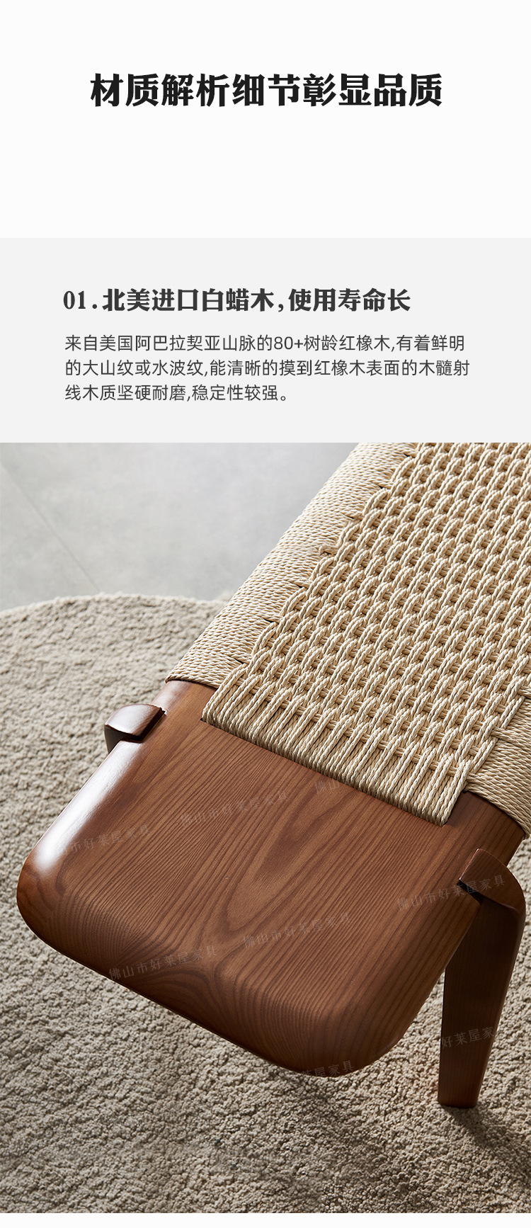 | 材質介紹1 | 北美進口白蠟木+牛皮紙繩編織 |