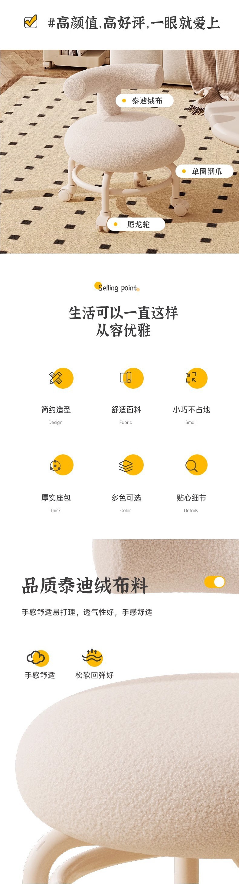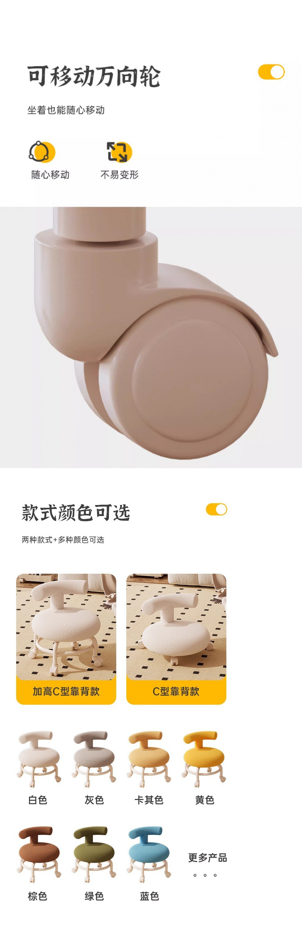 萬向輪小凳子家用客廳小凳子矮凳滑輪矮凳換鞋凳美縫凳羊羔絨