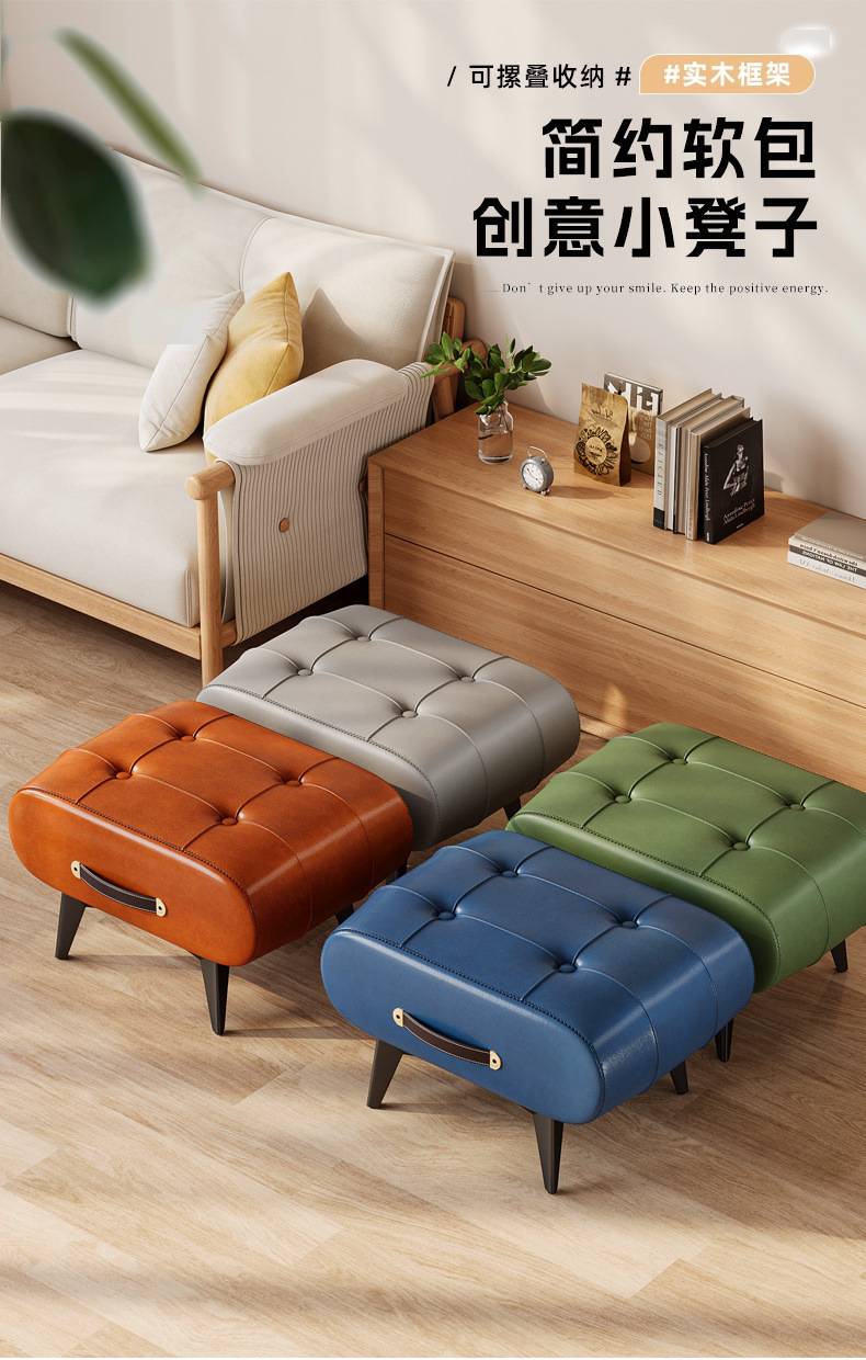 輕奢高級感小凳子客廳茶幾沙發凳家用矮凳腳踏腳凳換鞋凳門口皮墩
