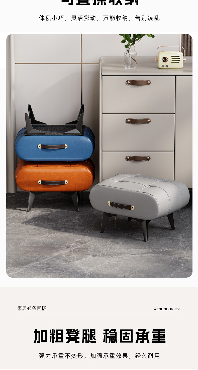 家用門口矮凳油蠟皮手提凳客廳沙發腳踏板凳茶幾小凳子入戶換鞋凳