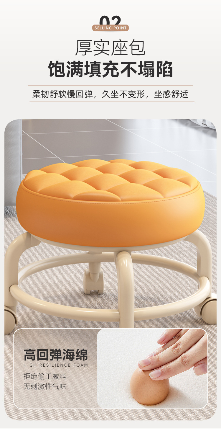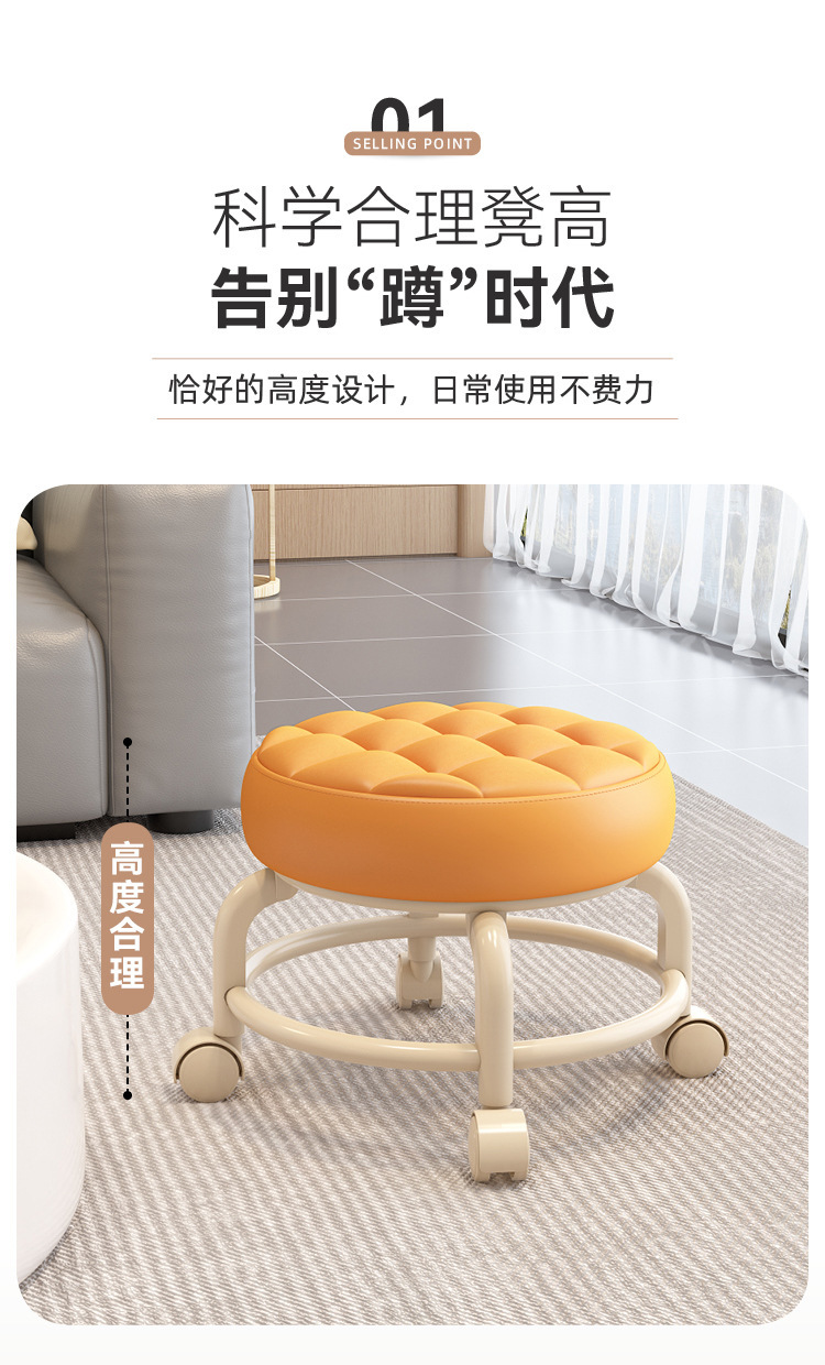 小凳子懶人靜音萬向輪換鞋凳美縫圓凳兒童學步小板凳家用滑輪矮凳
