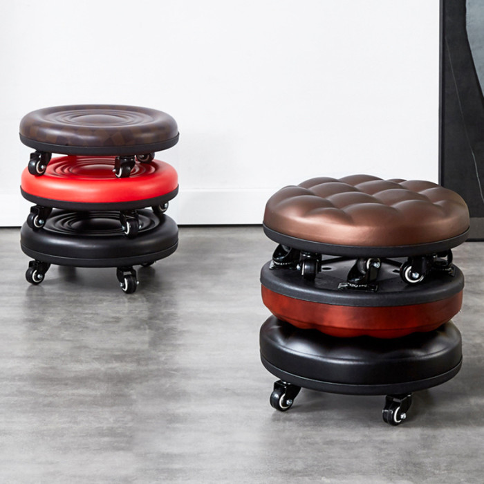 萬向輪小凳子帶滑輪矮凳家用小板凳圓凳門口換鞋凳移動拆快遞椅子