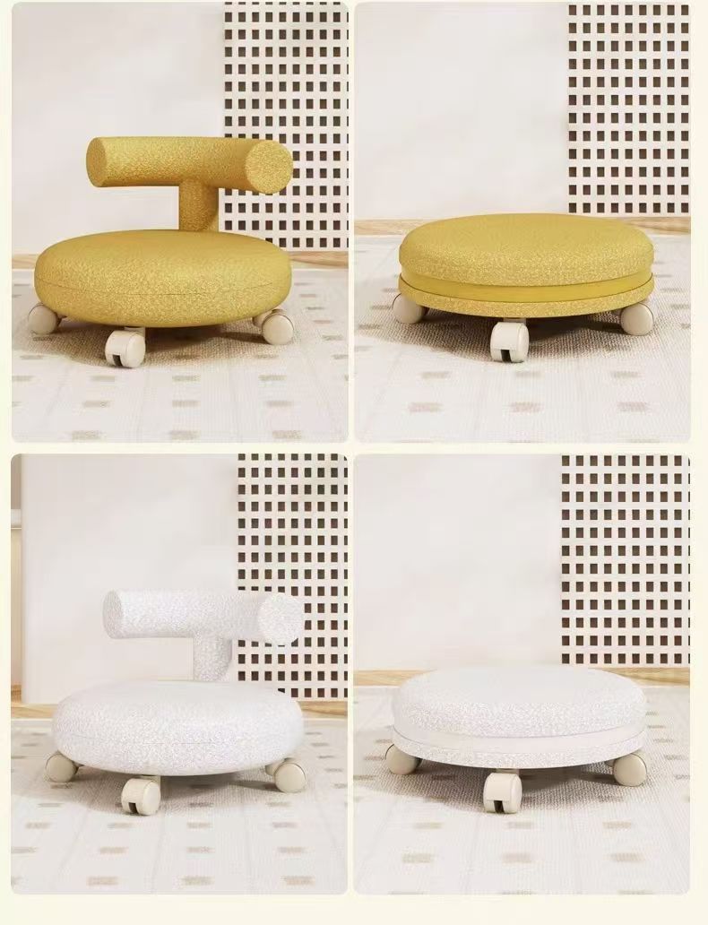 新款羊羔絨家用滑輪矮凳美縫美甲萬向輪小凳子兒童學步旋轉換鞋凳