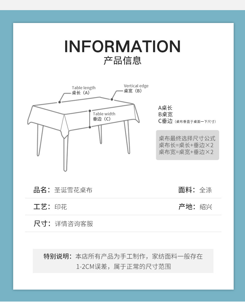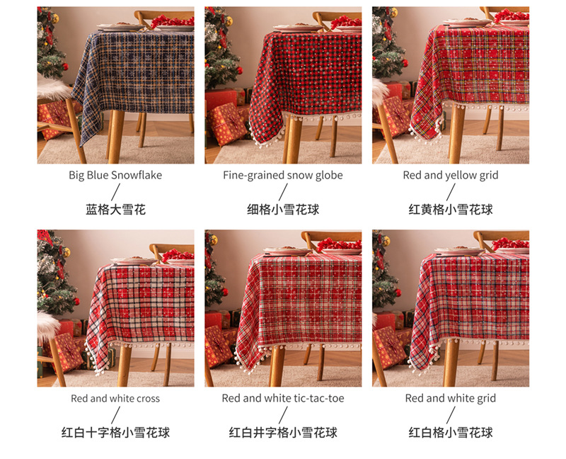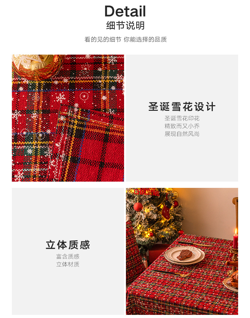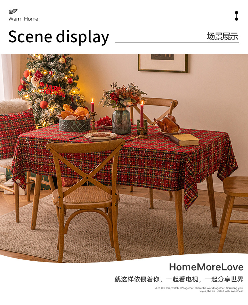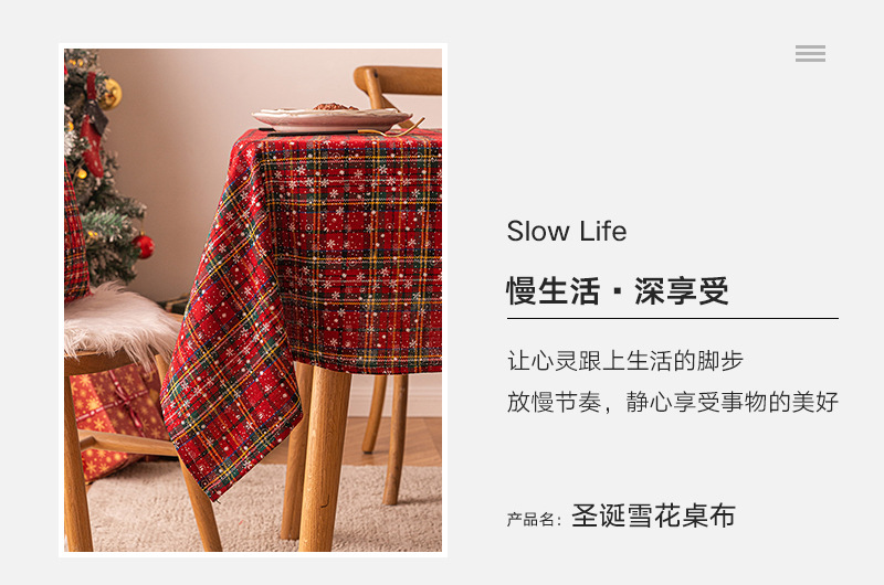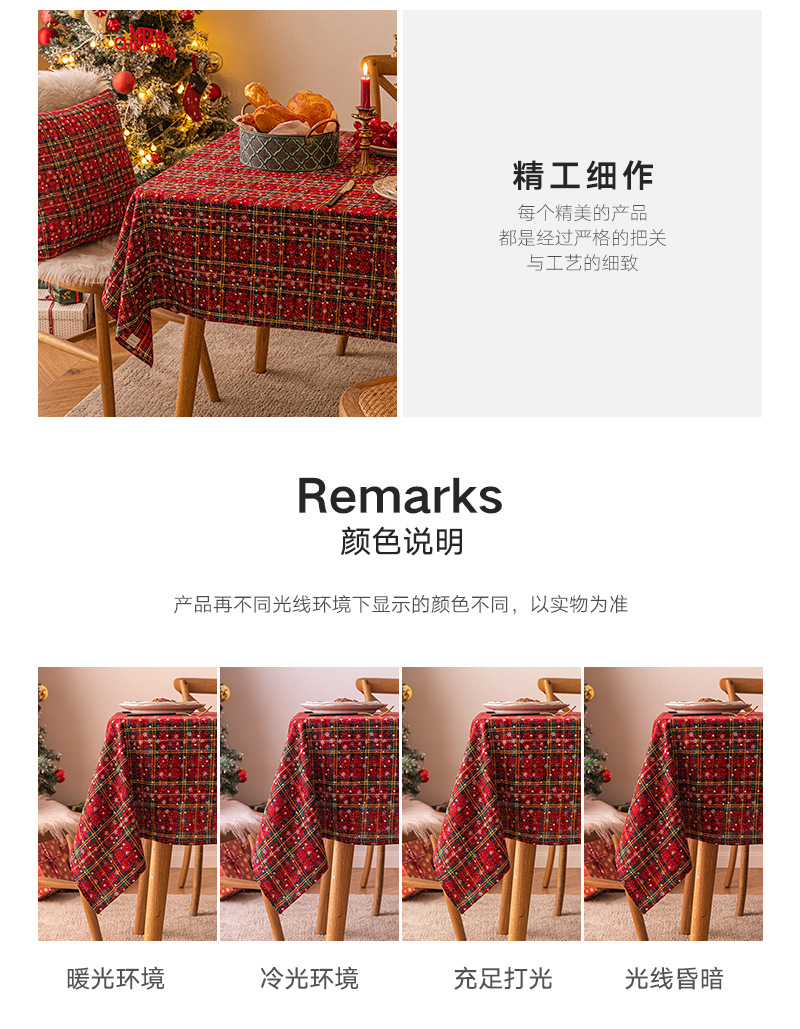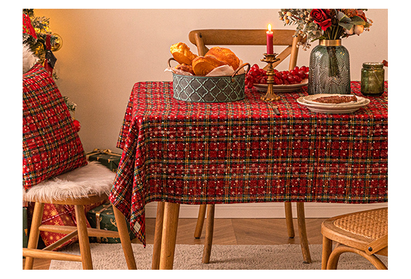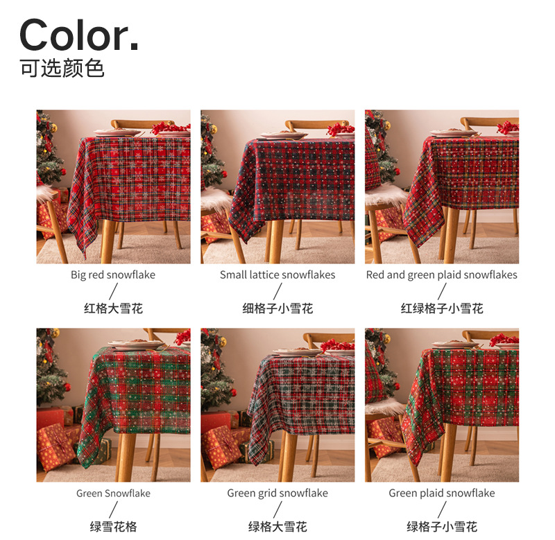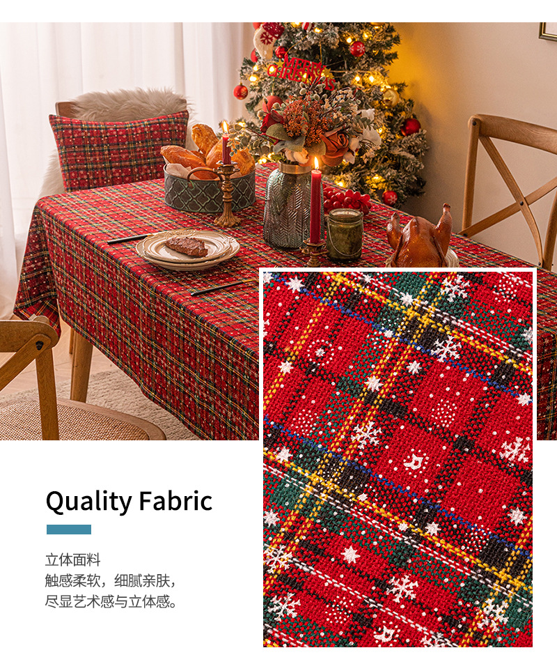 聖誕節紅綠格子餐桌布美式桌布長方形茶幾布派對裝飾雪花印花台布