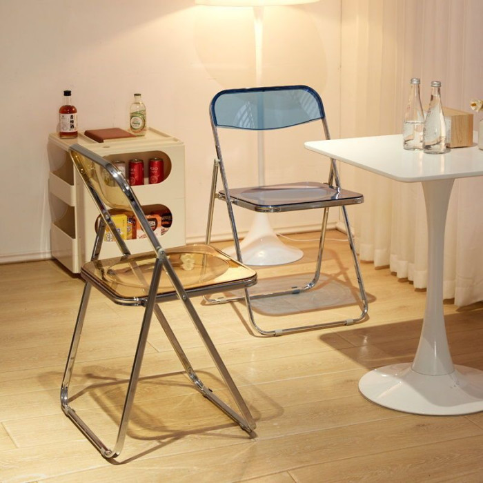 亞克力透明折曡椅子靠背餐椅簡約家用ins風奶茶店休閒椅拍照凳子