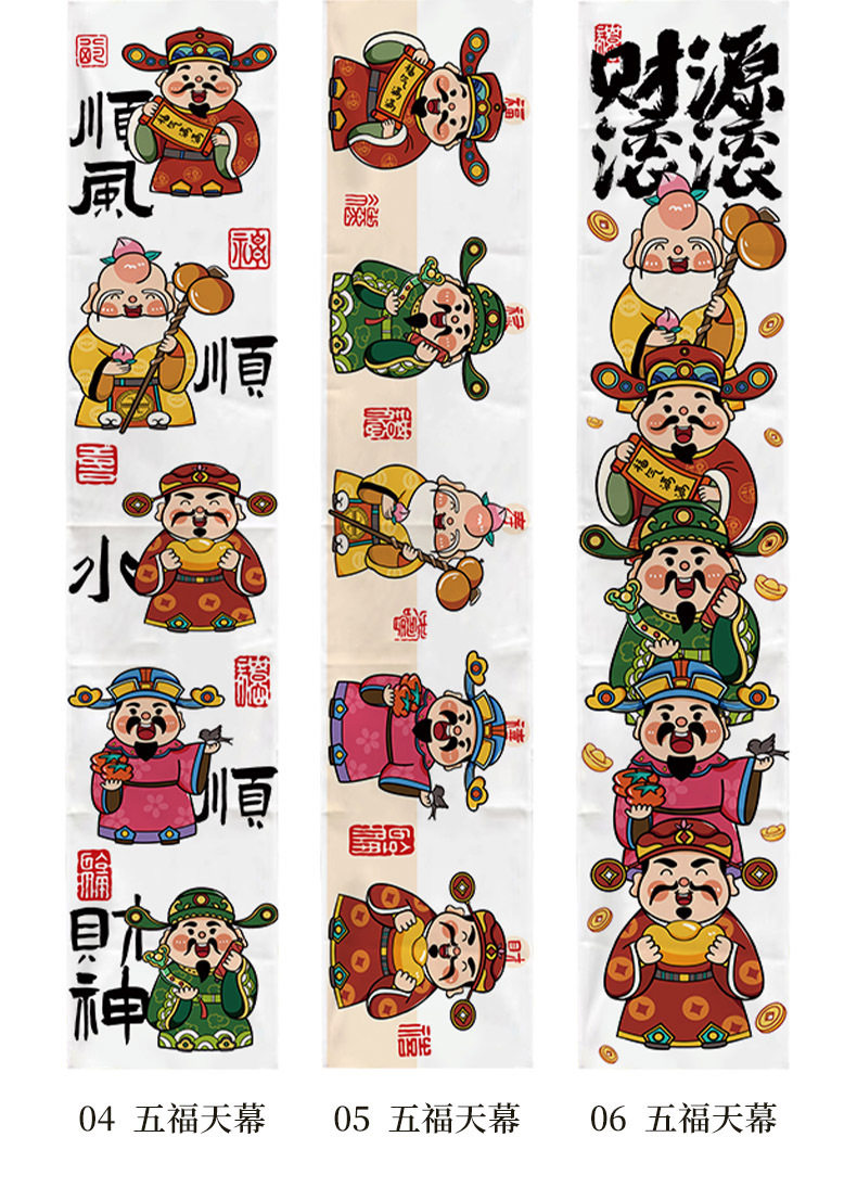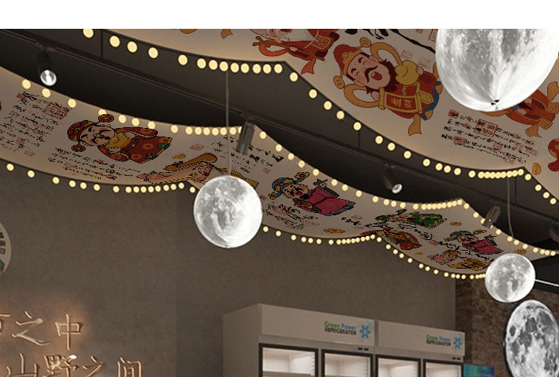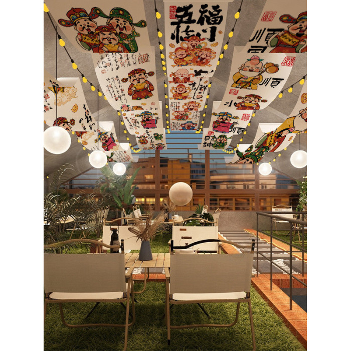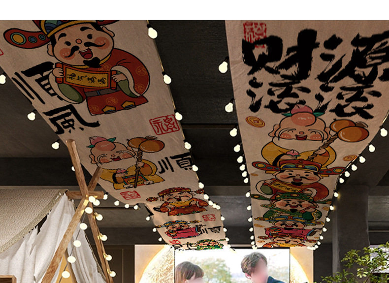 2026年新年吊頂裝飾迎五福財神天幕掛布市井風火鍋餐飲室內氛圍感