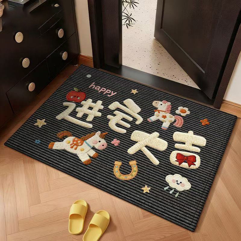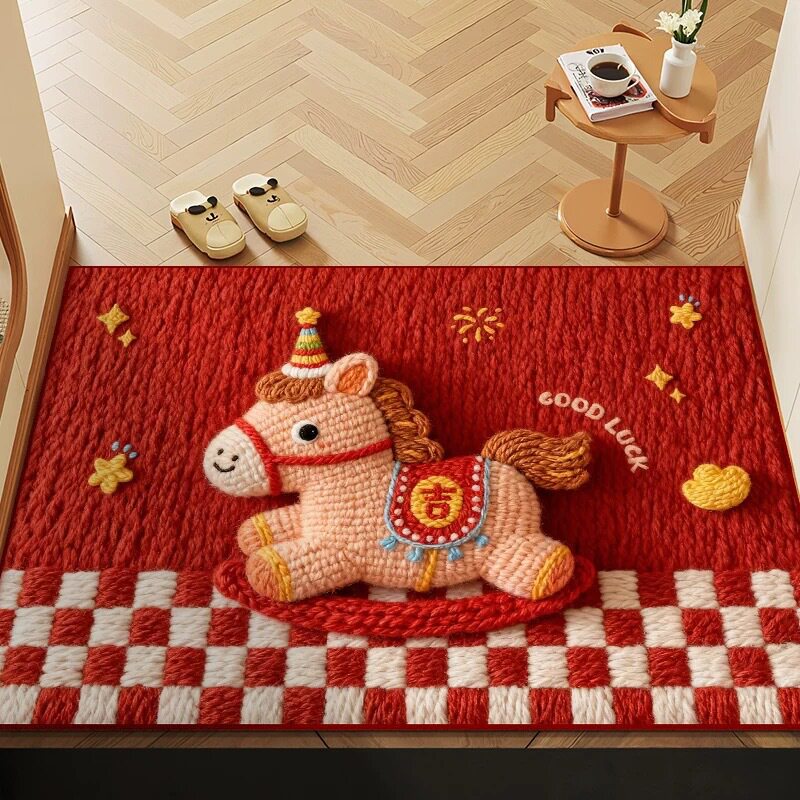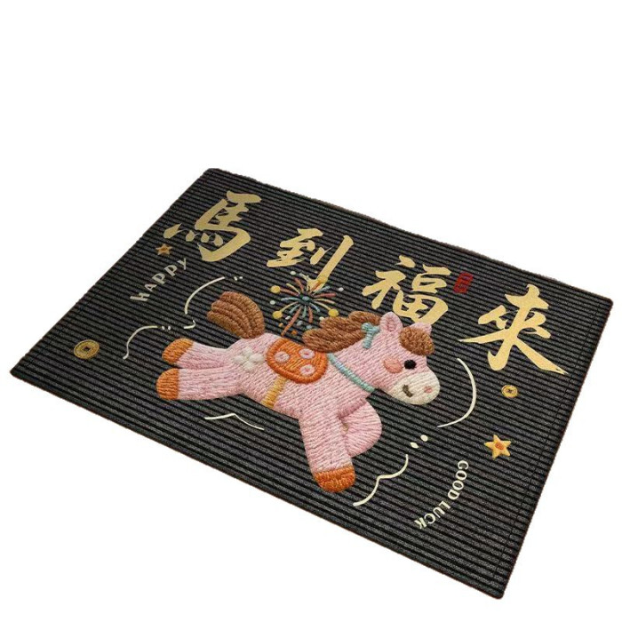 2026馬年新年卡通喜慶地墊進門入戶玄關浴室水晶絨腳墊地毯門墊