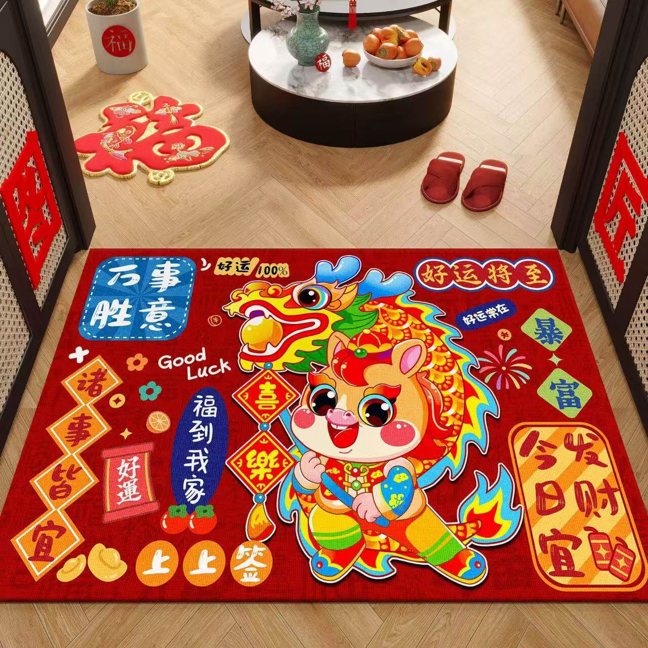 2026馬年地墊入戶紅門墊進門蹭土腳墊新年裝飾喜慶腳墊耐髒門墊