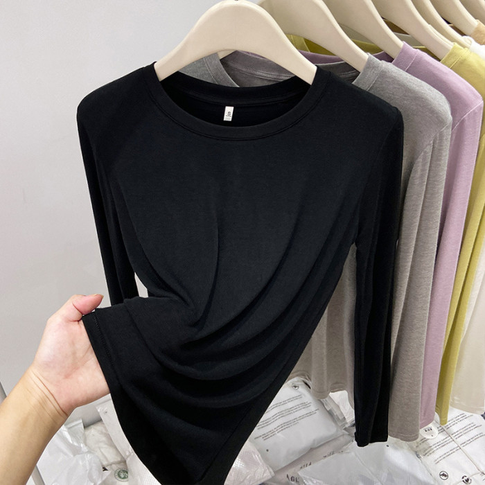 歐貨面膜T恤女軟糯打底衫薄款簡約百搭長袖上衣秋季基礎款T恤內搭